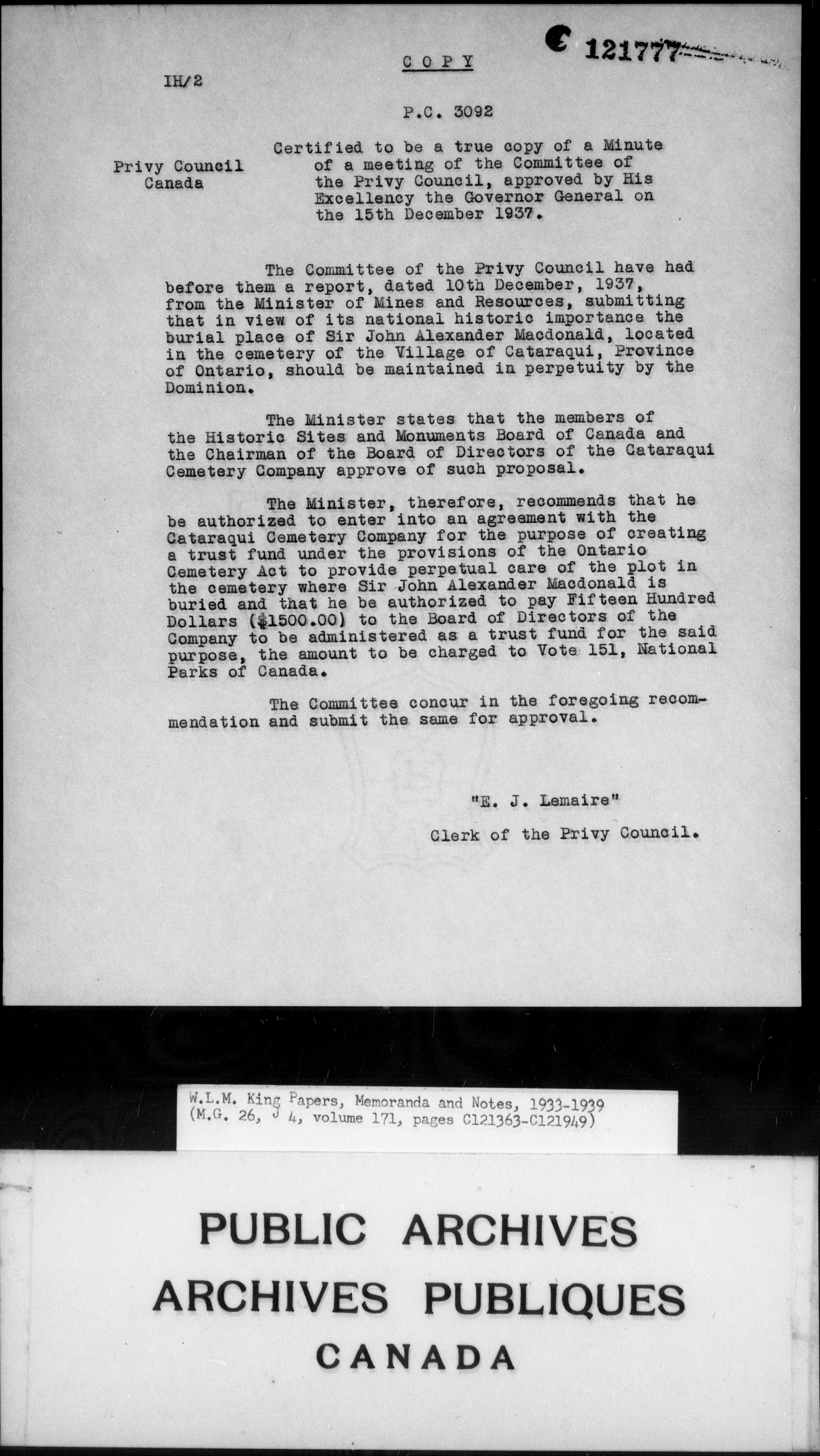 William Lyon Mackenzie King : Memoranda and notes (J4) - 4263