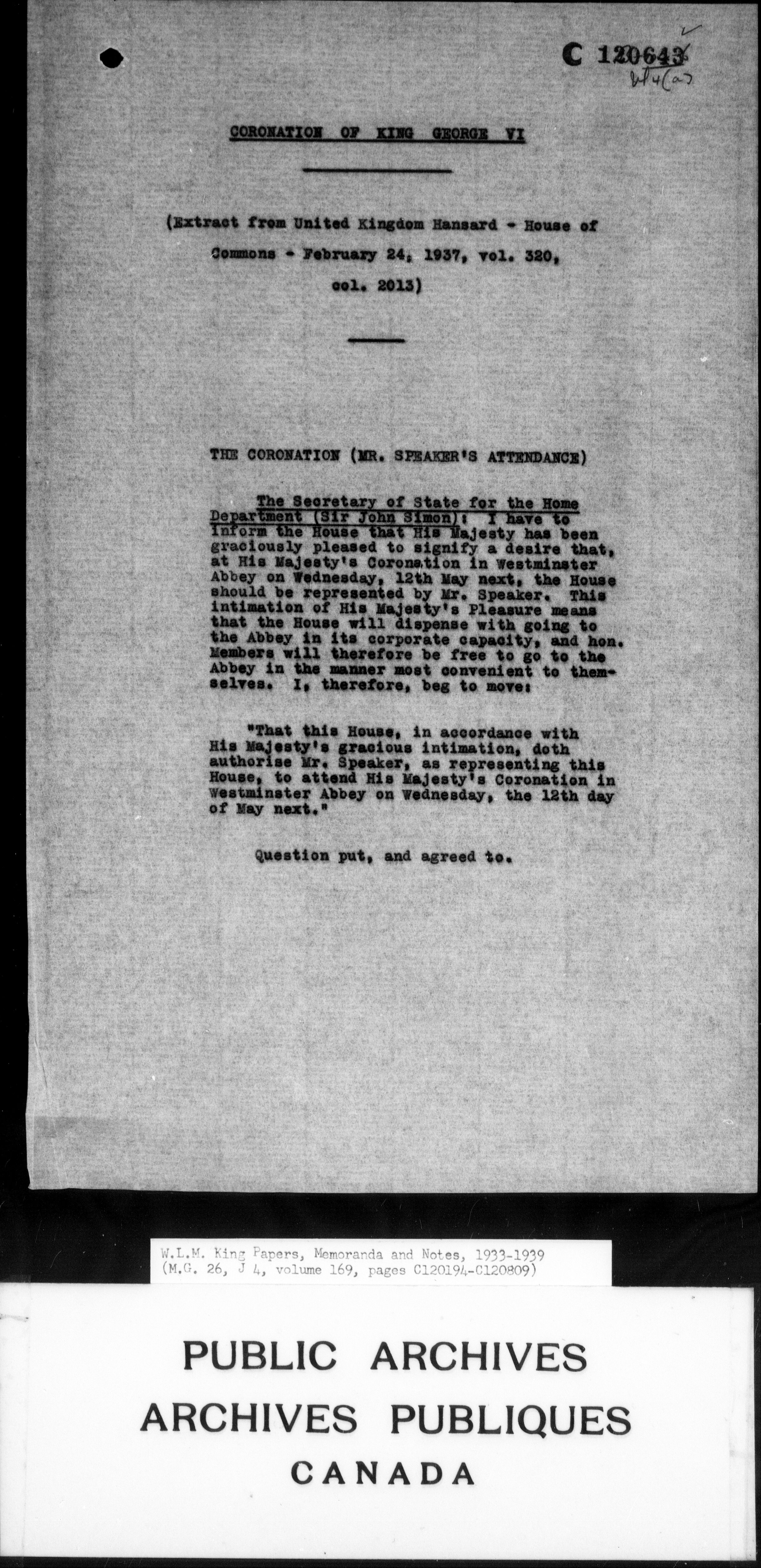 William Lyon Mackenzie King : Memoranda and notes (J4) - 4263