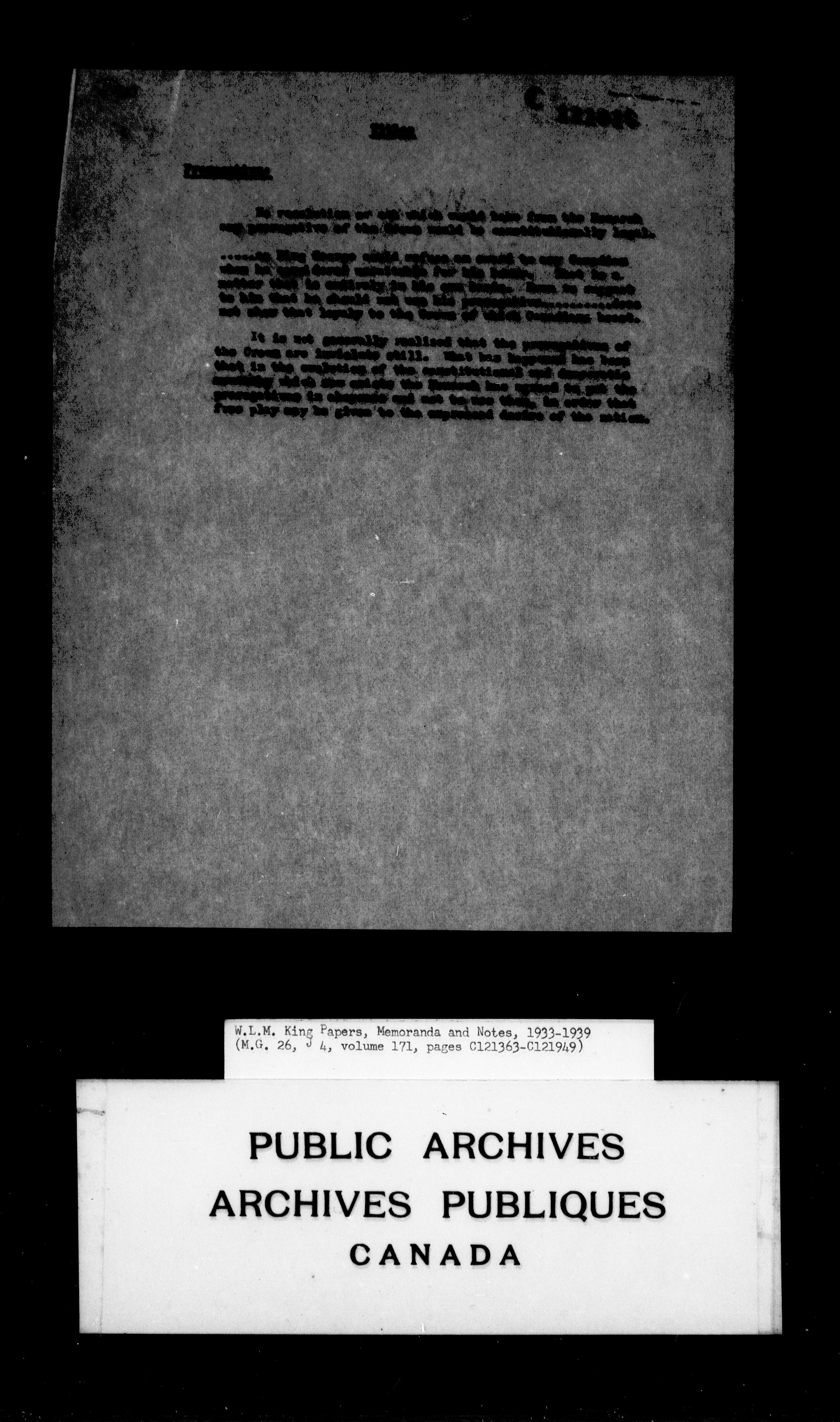 William Lyon Mackenzie King : Memoranda and notes (J4) : C-4264