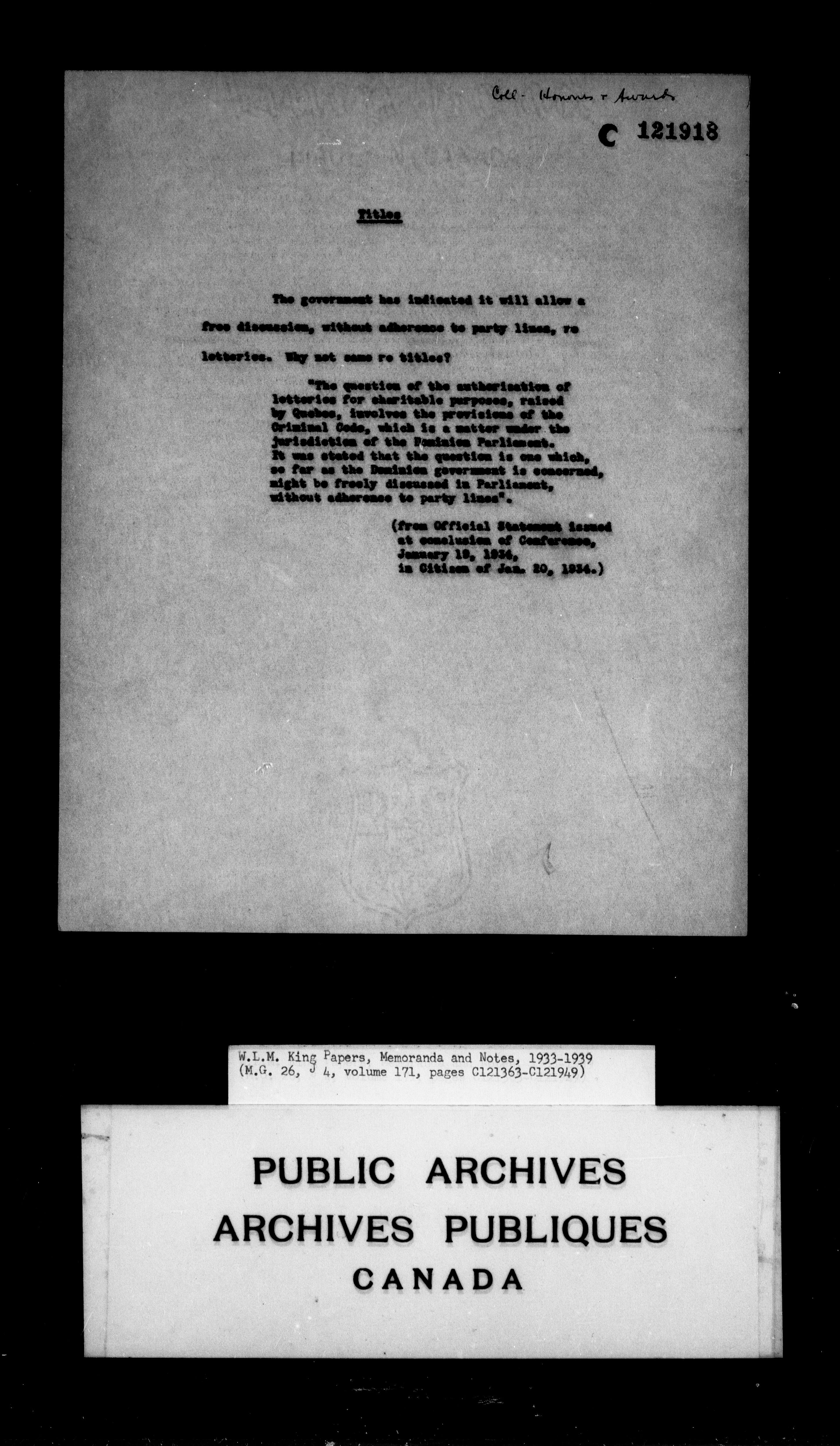 William Lyon Mackenzie King : Memoranda and notes (J4) : C-4264