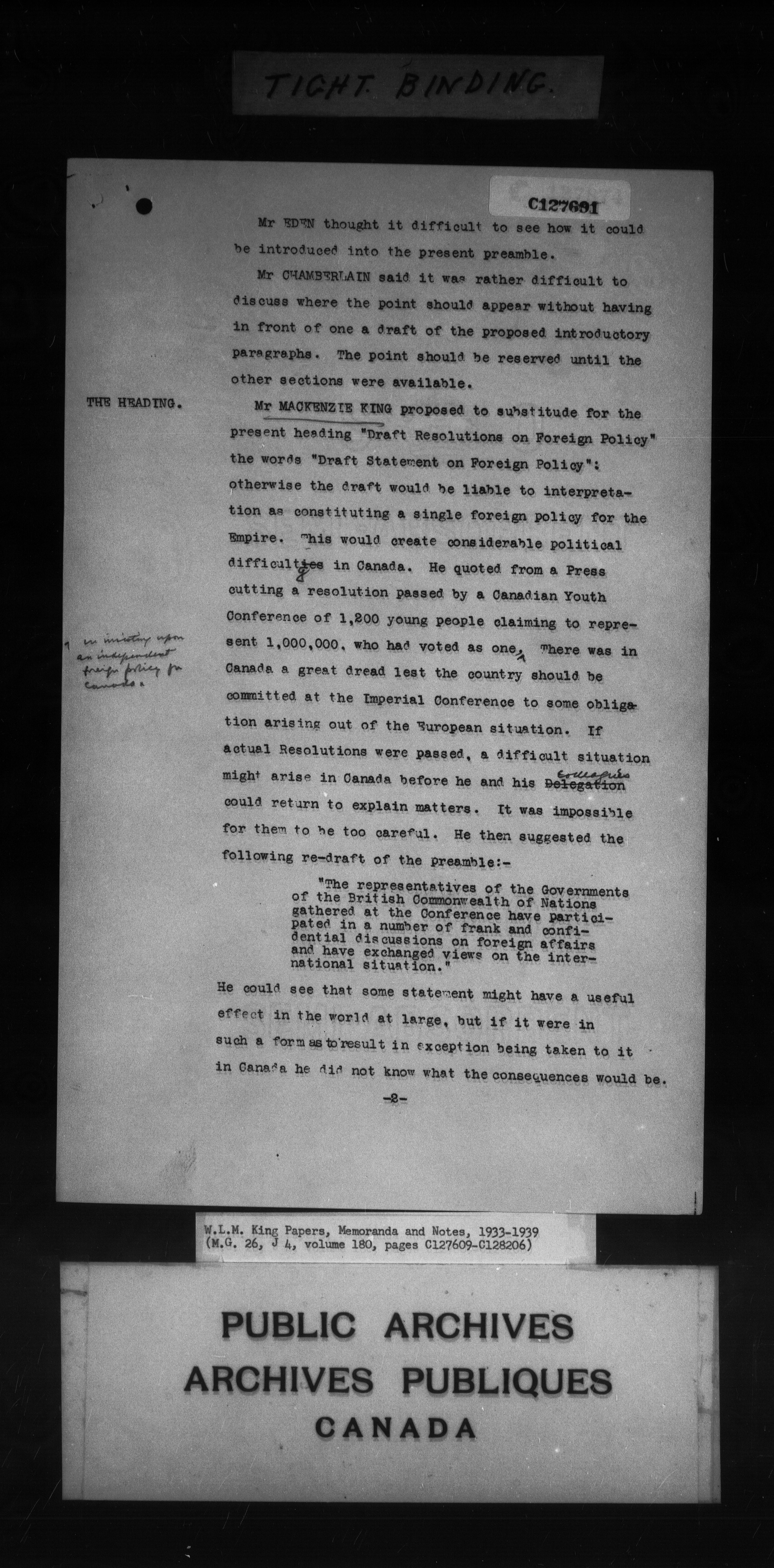 William Lyon Mackenzie King : Memoranda and notes (J4) : C-4267