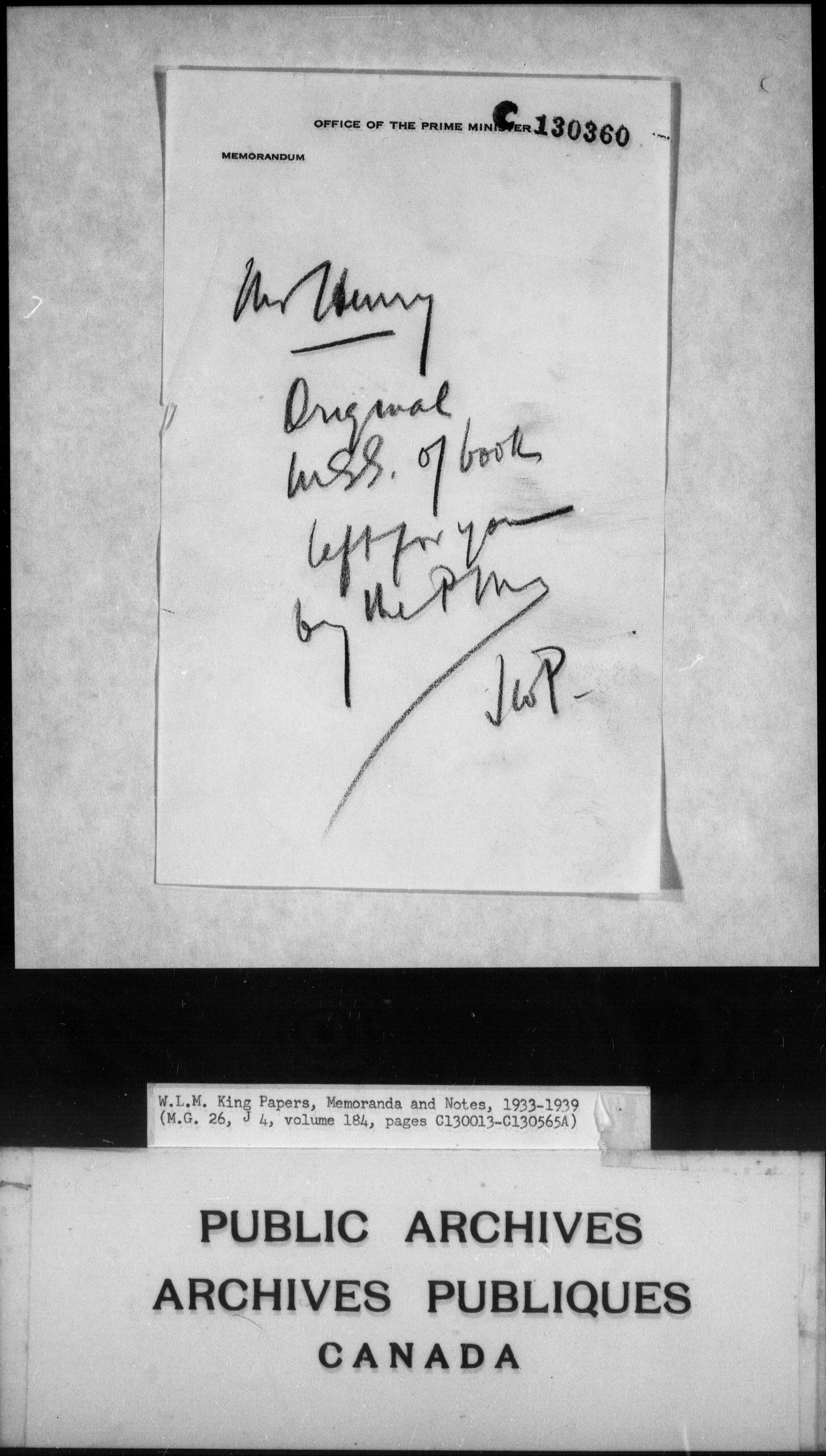 William Lyon Mackenzie King : Memoranda and notes (J4) : C-4270