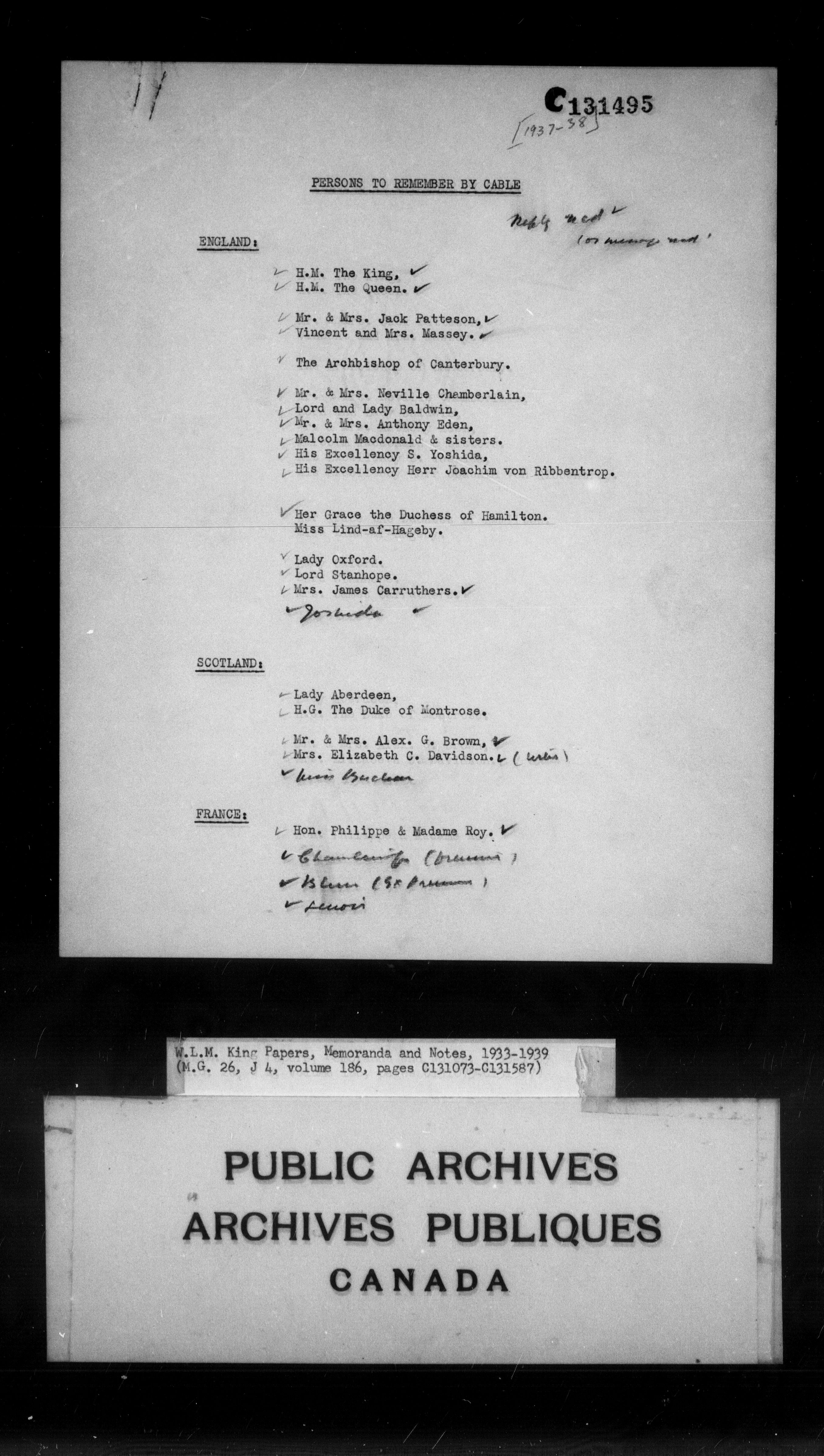William Lyon Mackenzie King : Memoranda and notes (J4) : C-4271