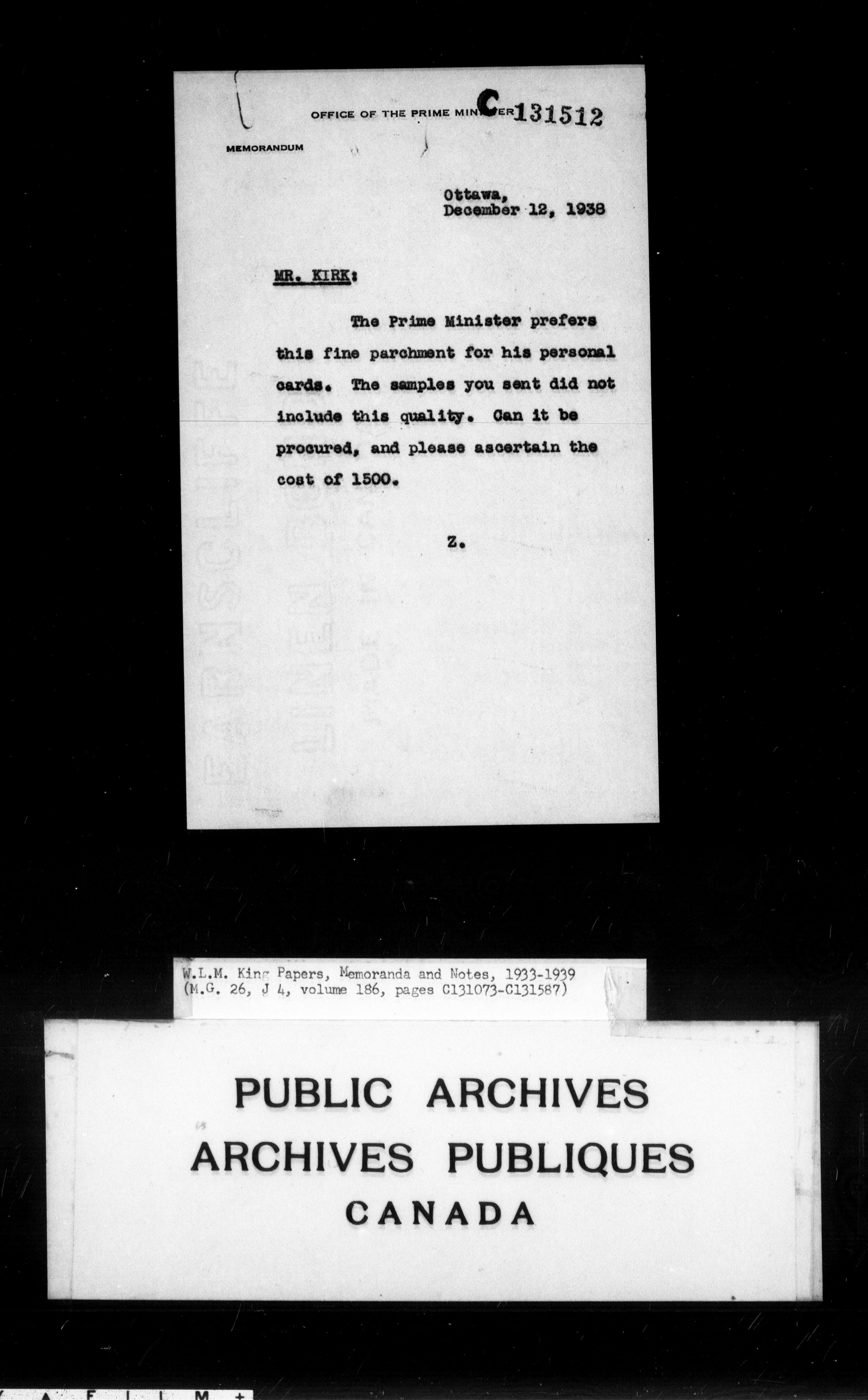William Lyon Mackenzie King : Memoranda and notes (J4) : C-4271