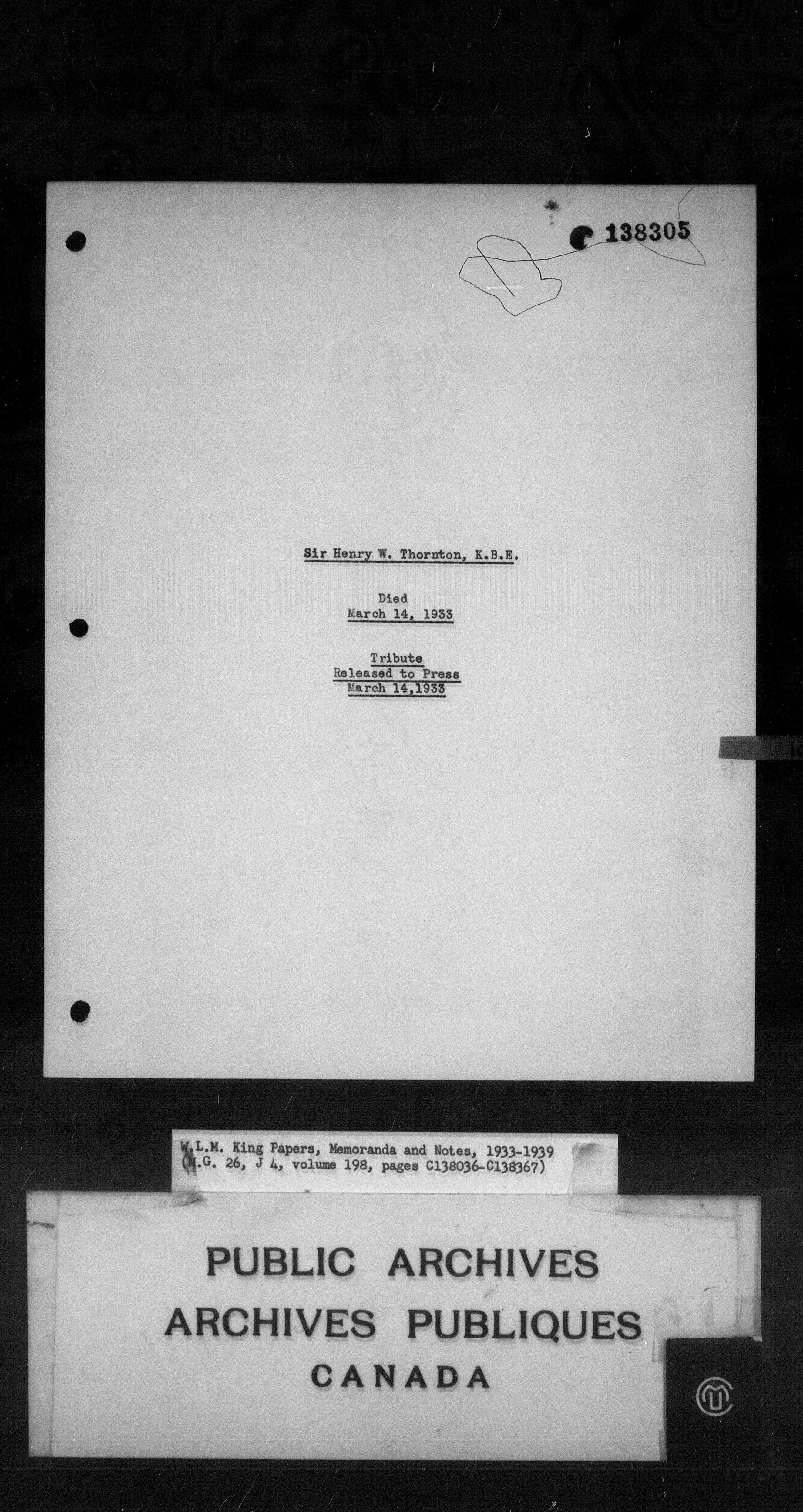 William Lyon Mackenzie King : Memoranda and notes (J4) : C-4276
