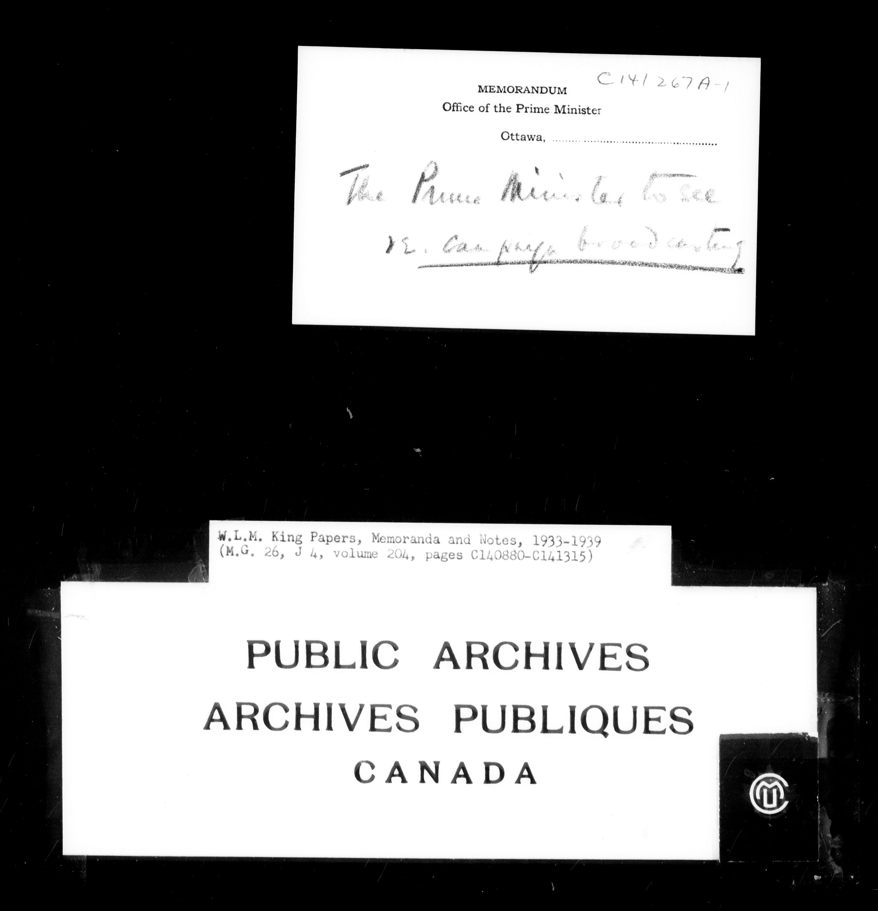 William Lyon Mackenzie King : Memoranda and notes (J4) : C-4278