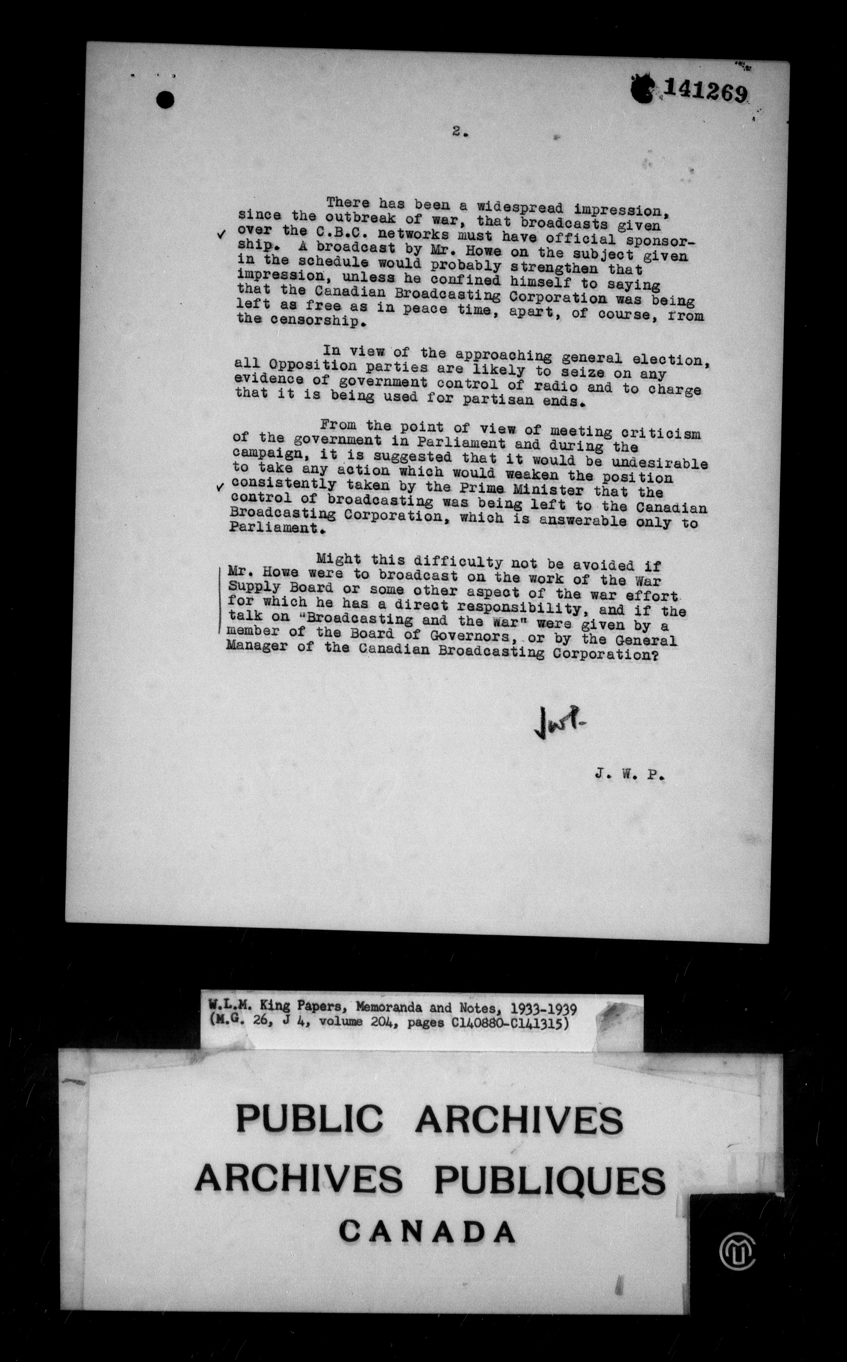 William Lyon Mackenzie King : Memoranda and notes (J4) : C-4278