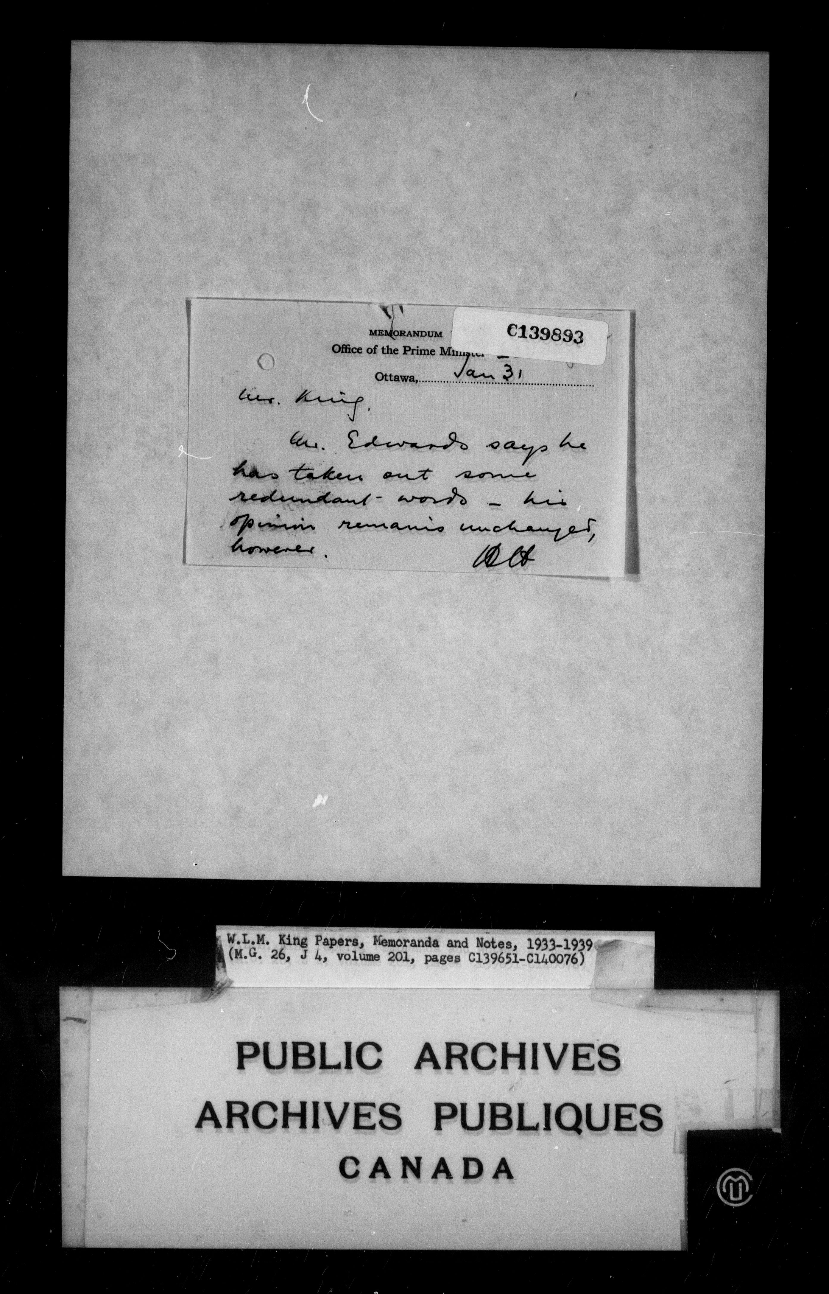 William Lyon Mackenzie King : Memoranda and notes (J4) - 4278