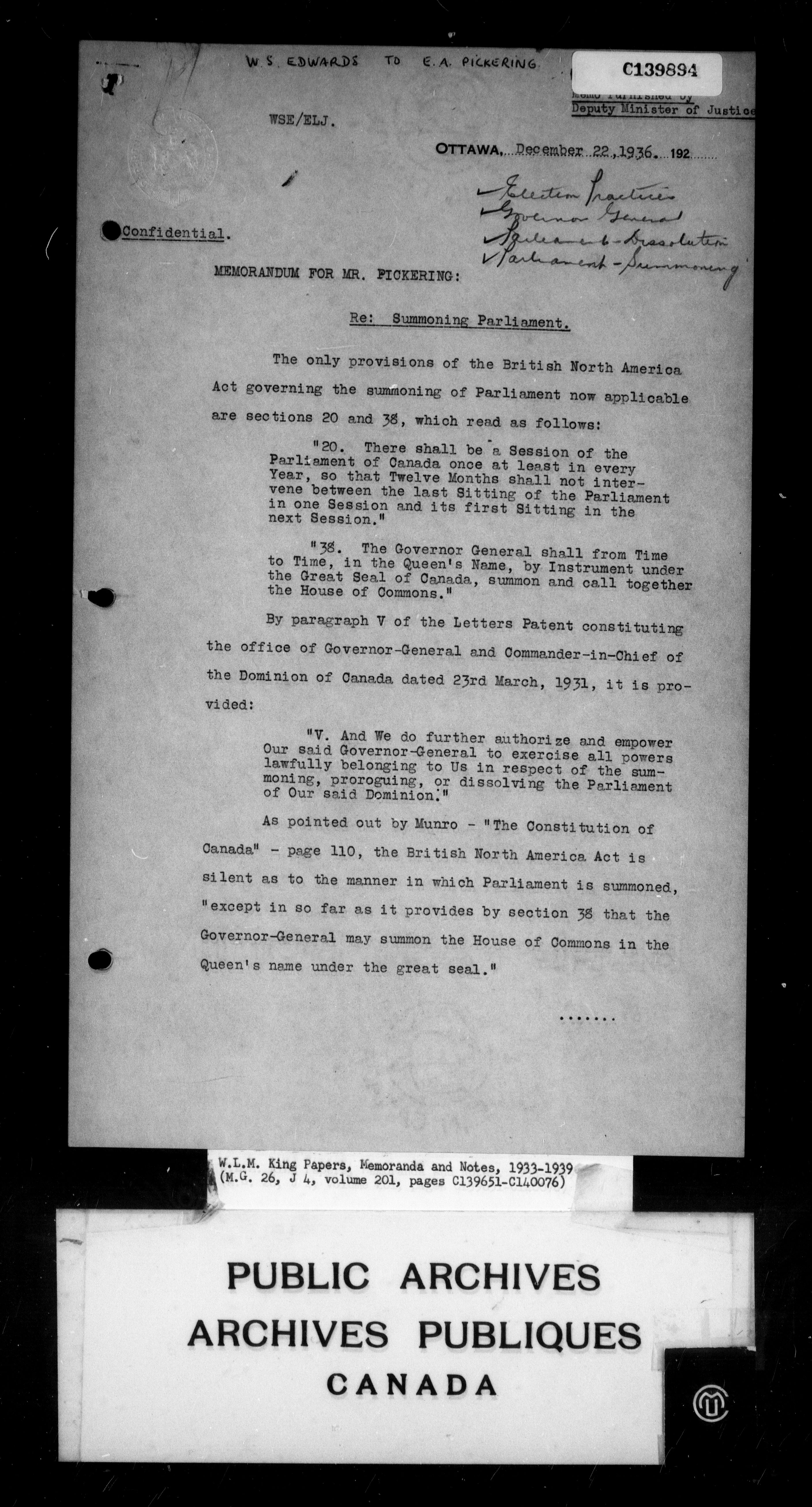 William Lyon Mackenzie King : Memoranda and notes (J4) : C-4278