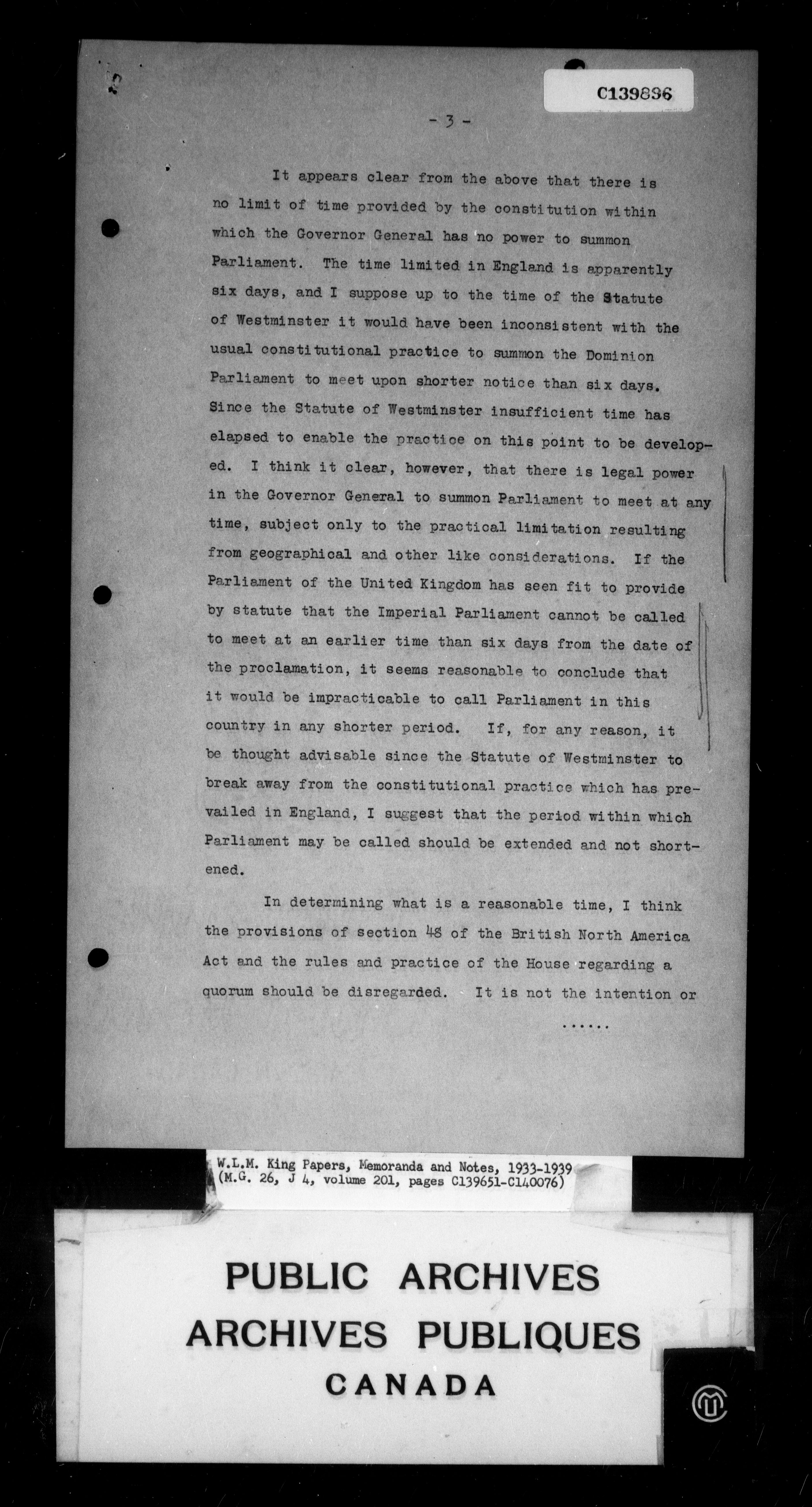 William Lyon Mackenzie King : Memoranda and notes (J4) : C-4278