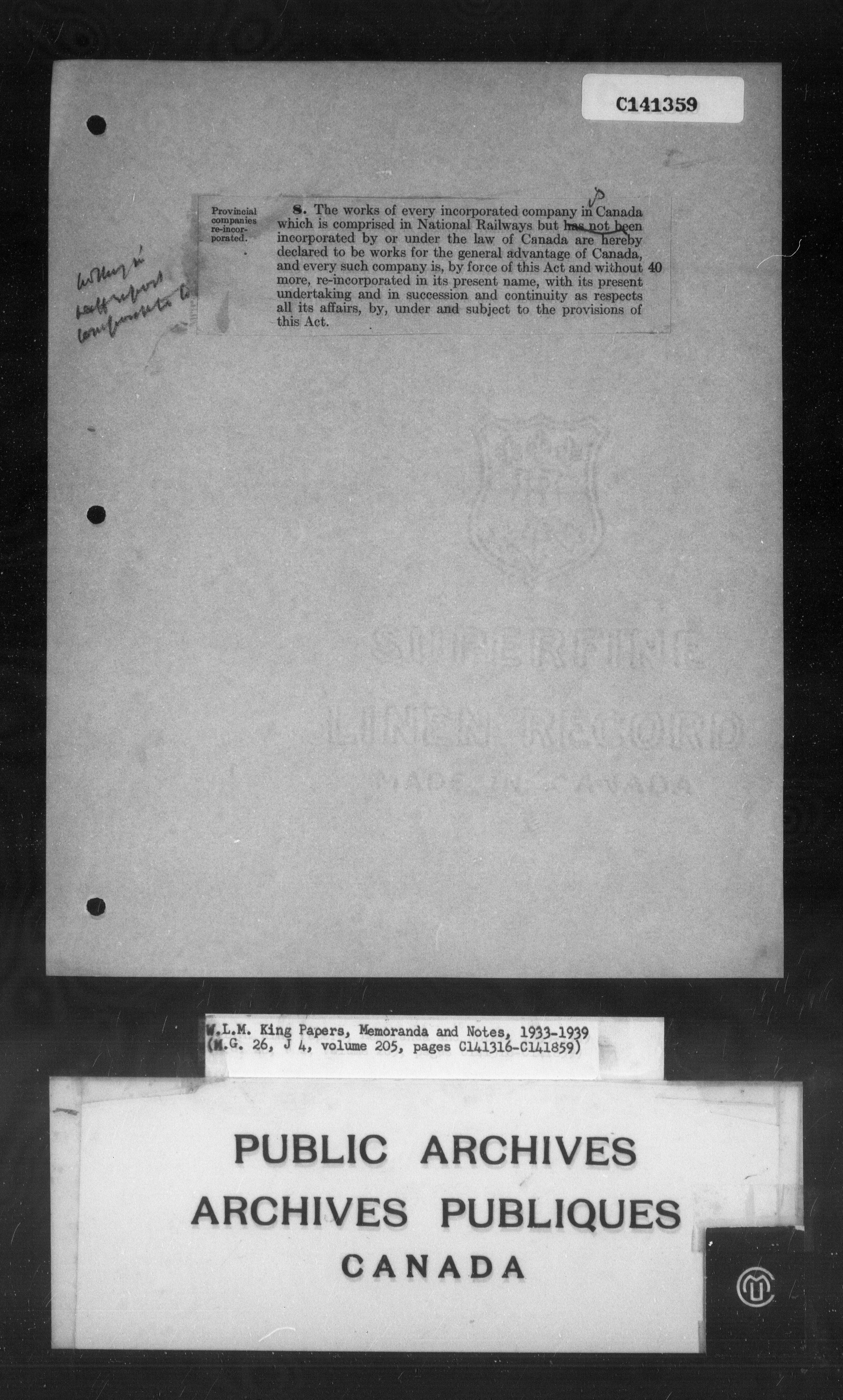 William Lyon Mackenzie King : Memoranda and notes (J4) : C-4279