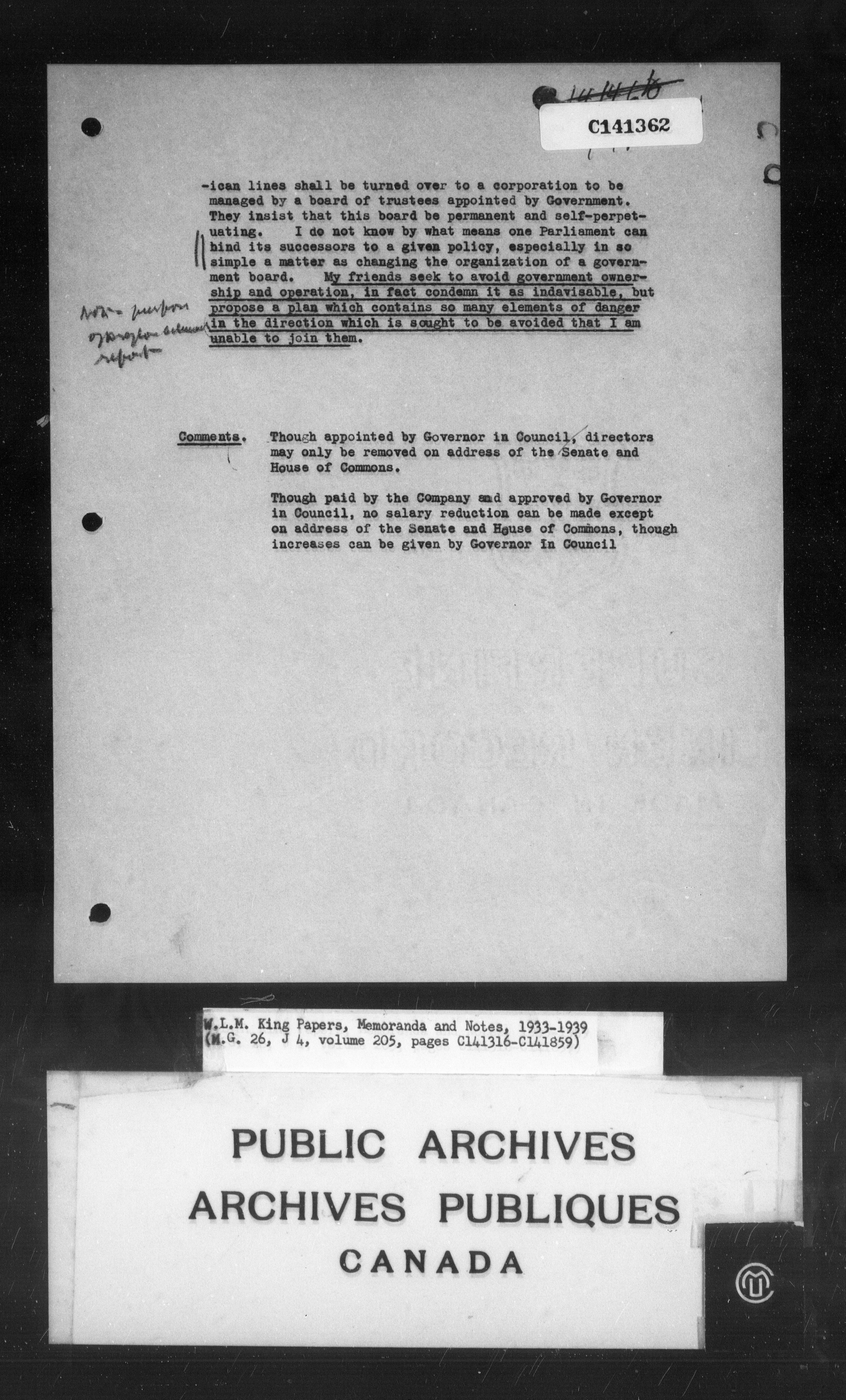 William Lyon Mackenzie King : Memoranda and notes (J4) - 4279
