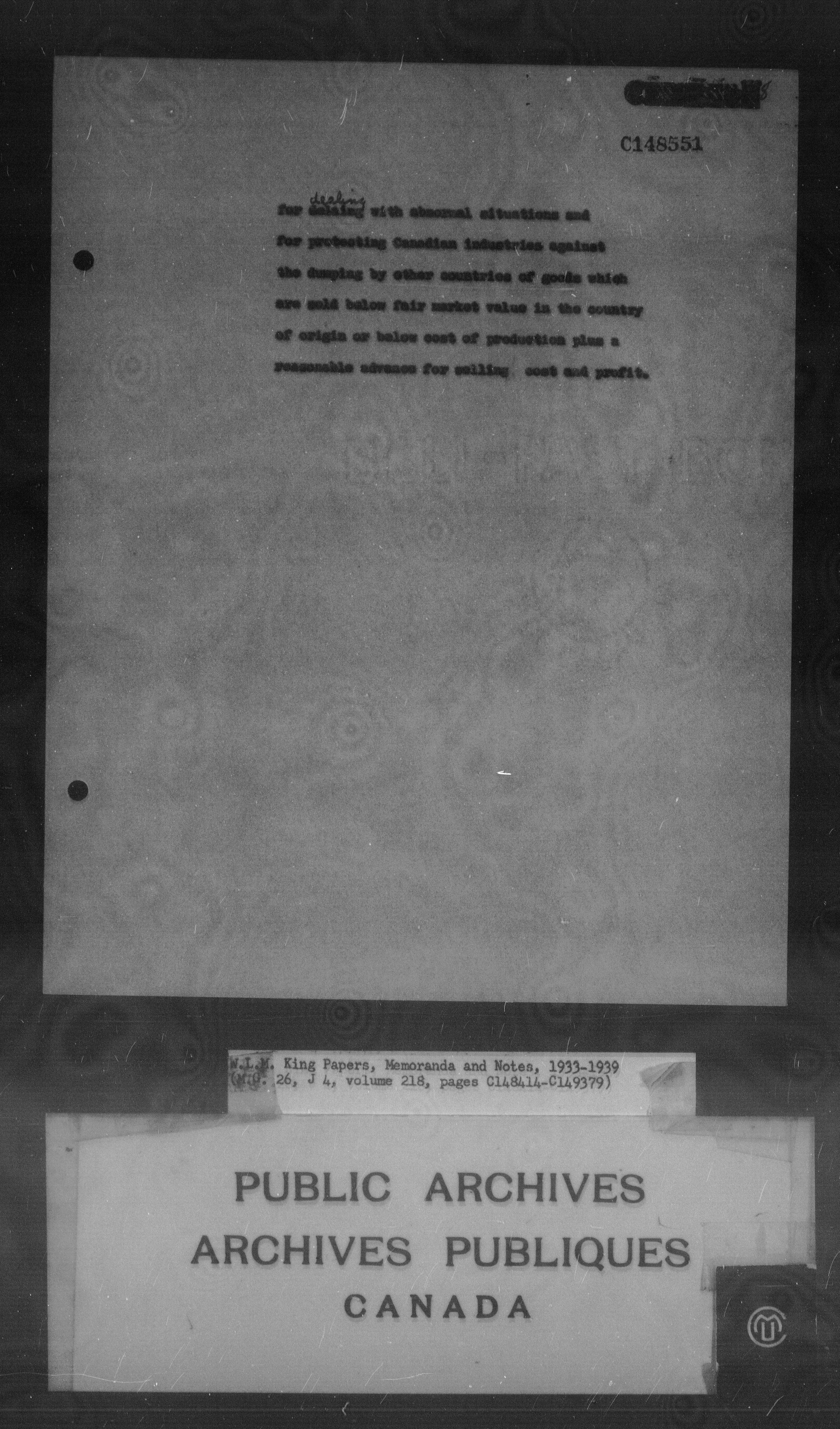 William Lyon Mackenzie King : Memoranda and notes (J4) : C-4283