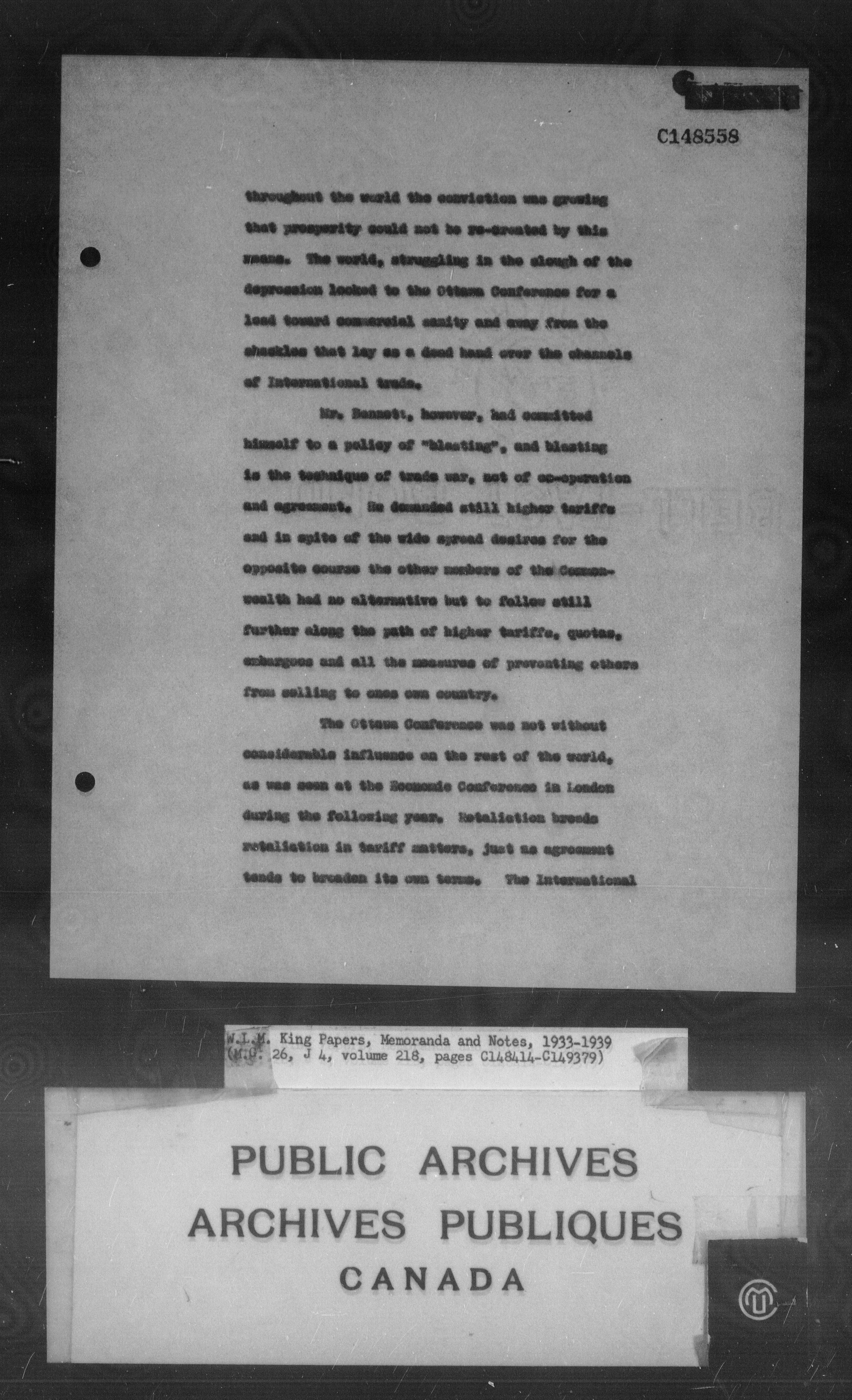 William Lyon Mackenzie King : Memoranda and notes (J4) : C-4283