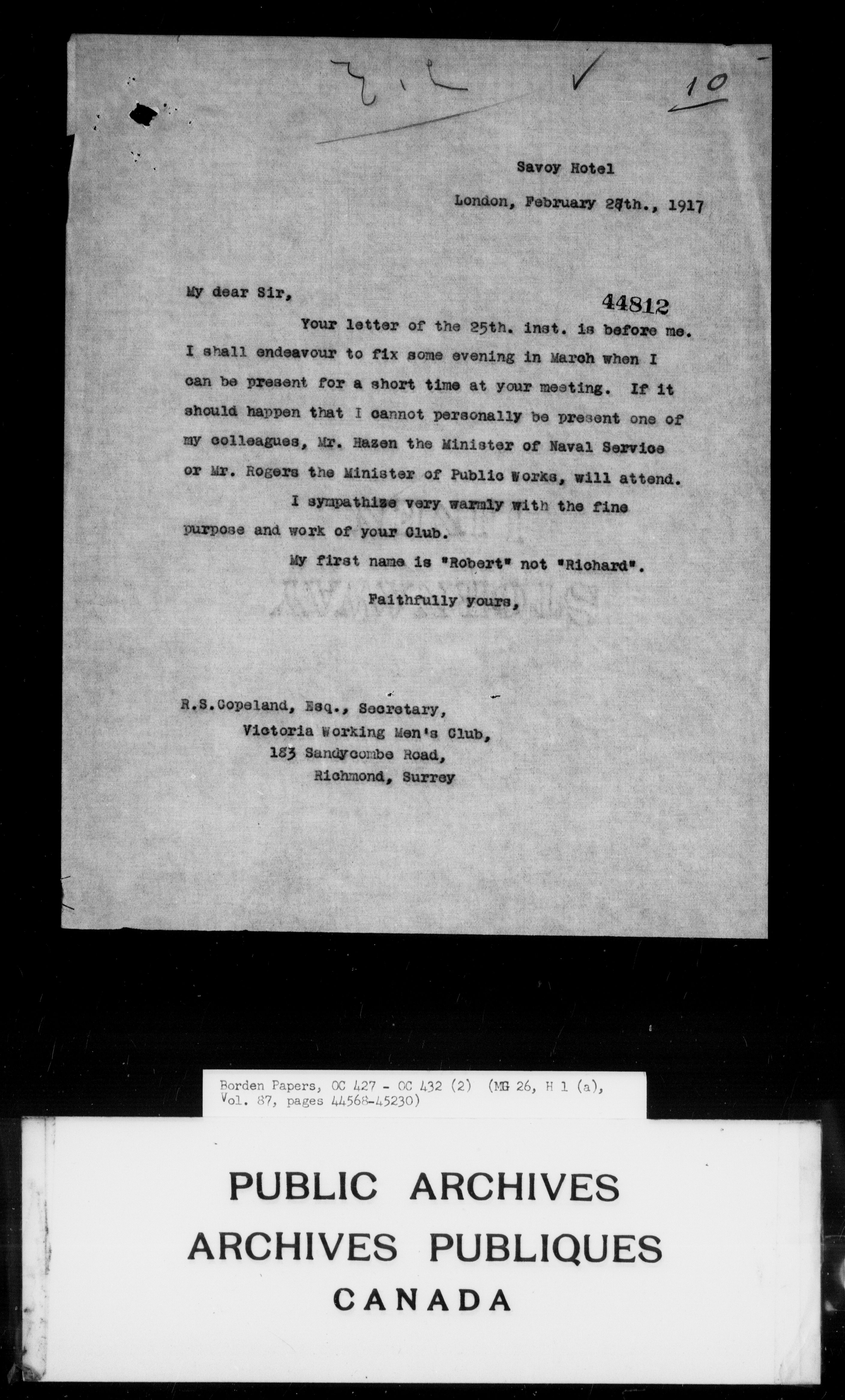 Sir Robert Borden fonds - 4323