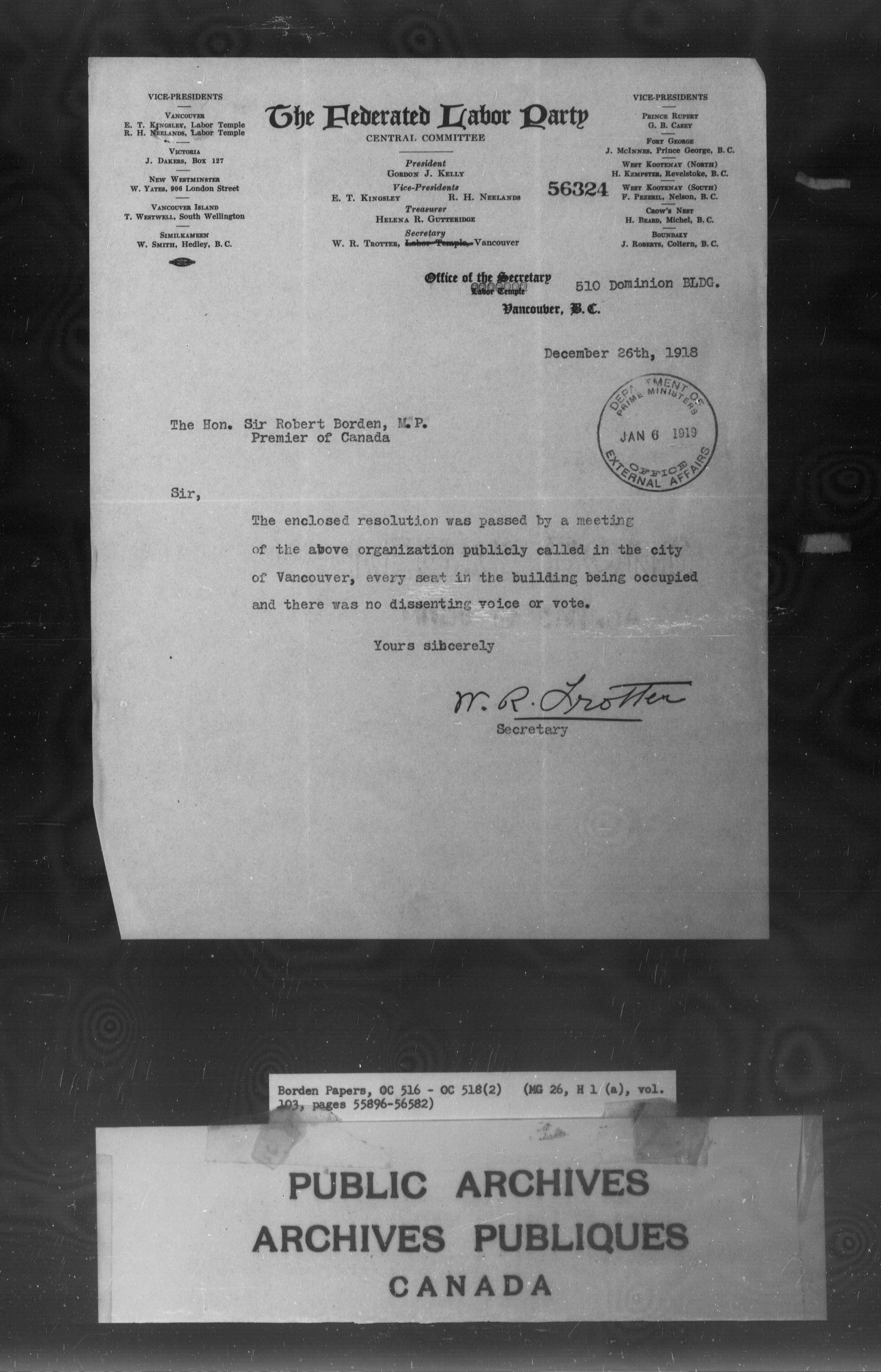 Sir Robert Borden fonds - 4334