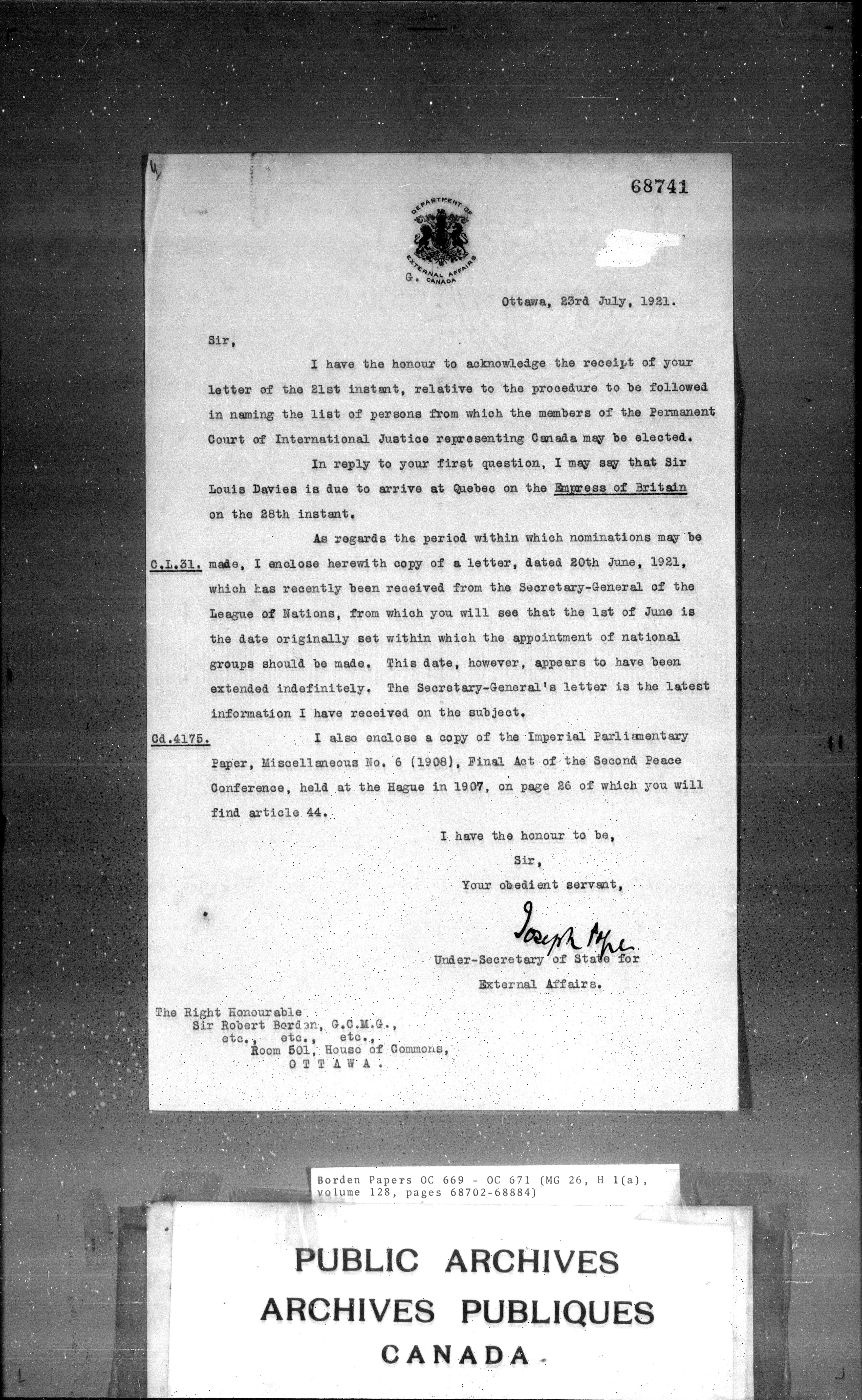 Sir Robert Borden fonds - 4351