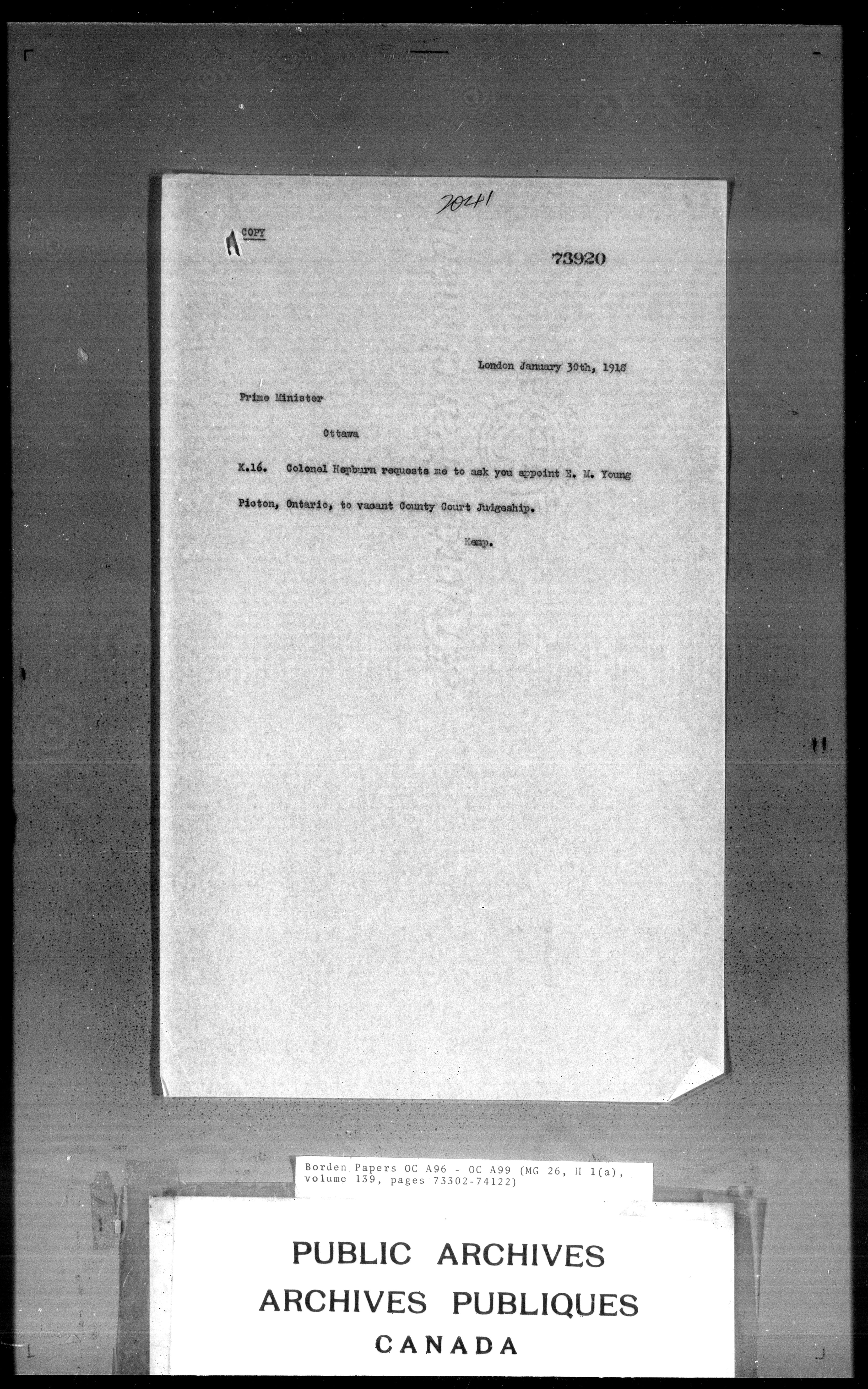 Sir Robert Borden fonds - 4357