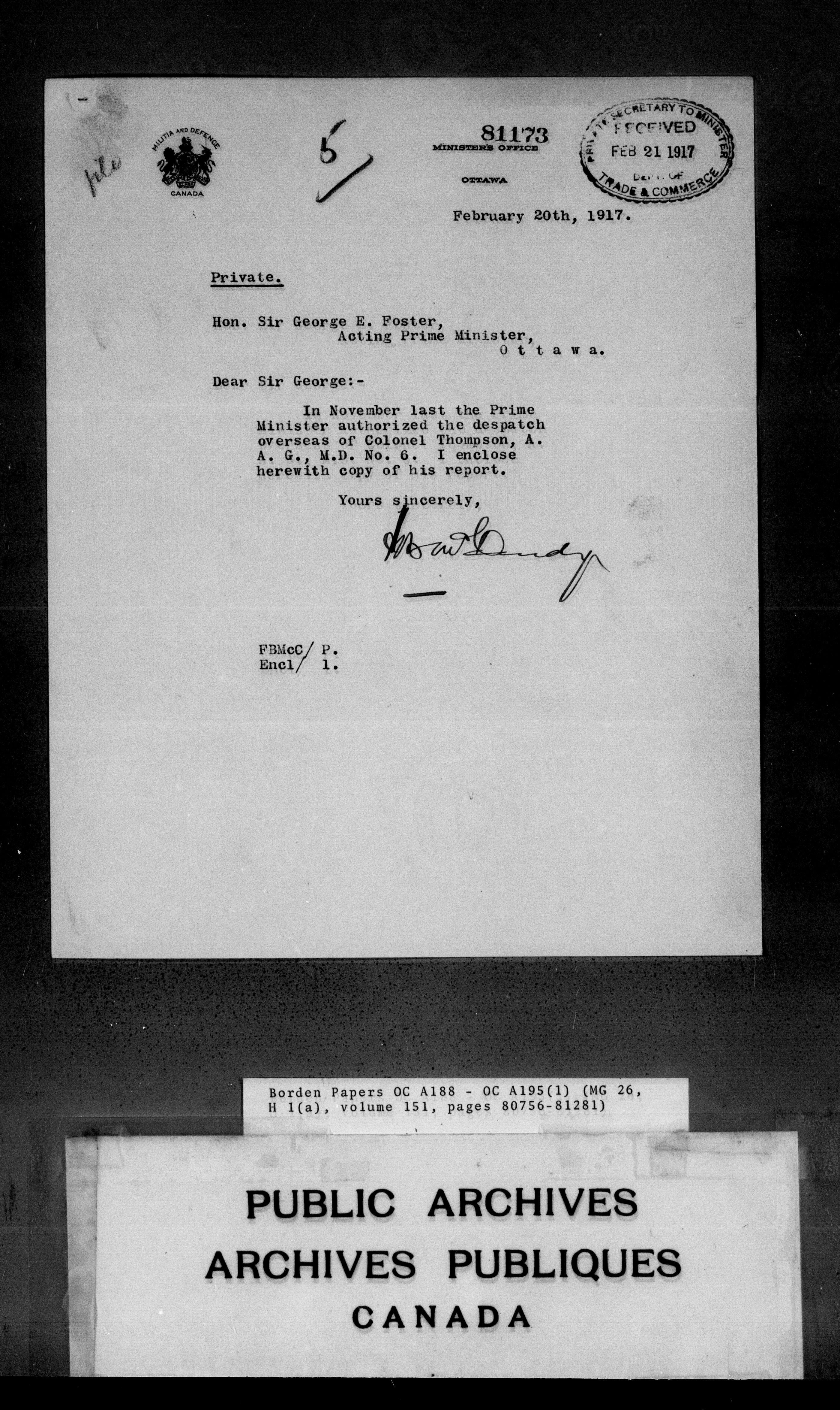 Sir Robert Borden fonds - 4364