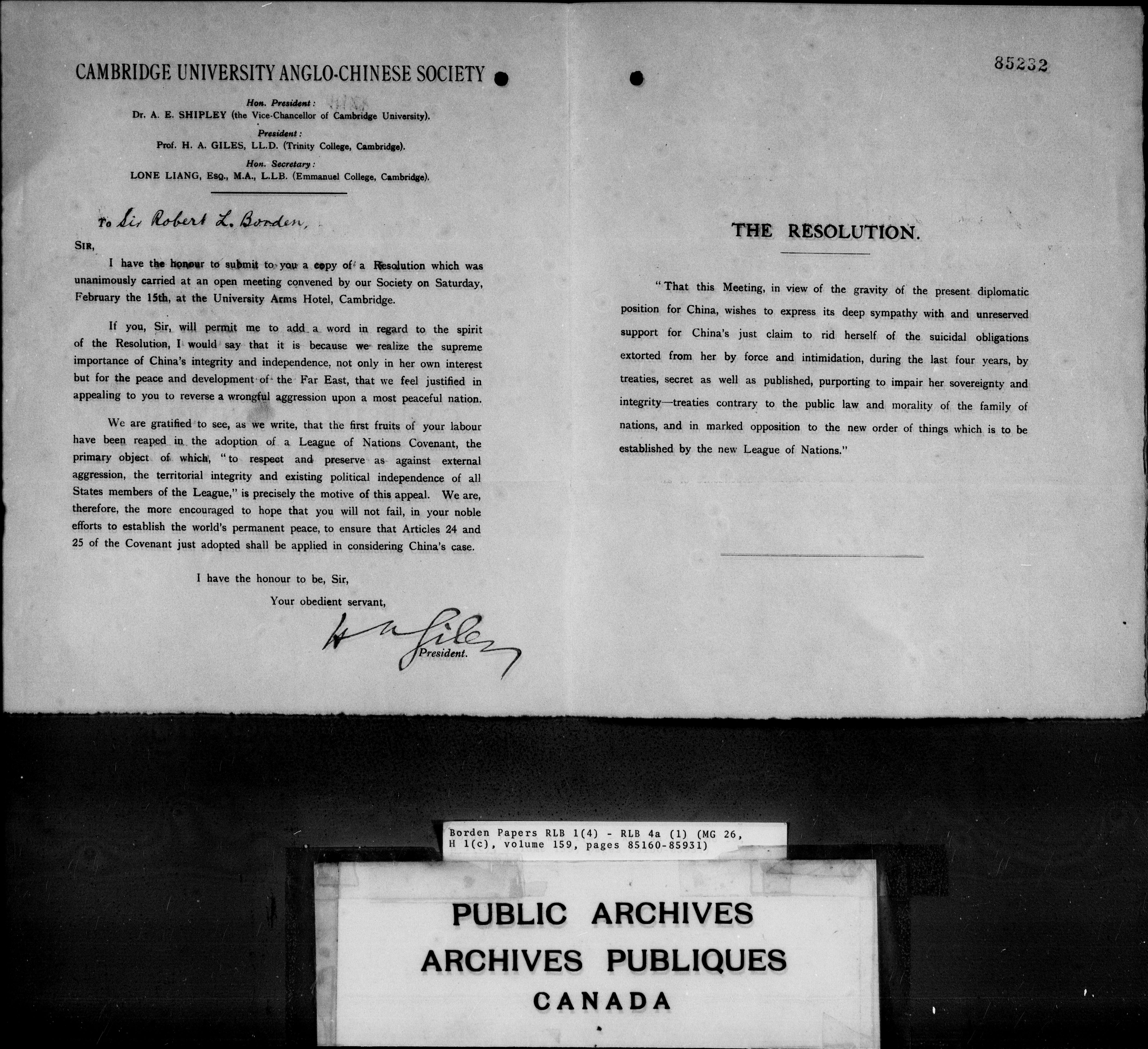 Sir Robert Borden fonds - 4367