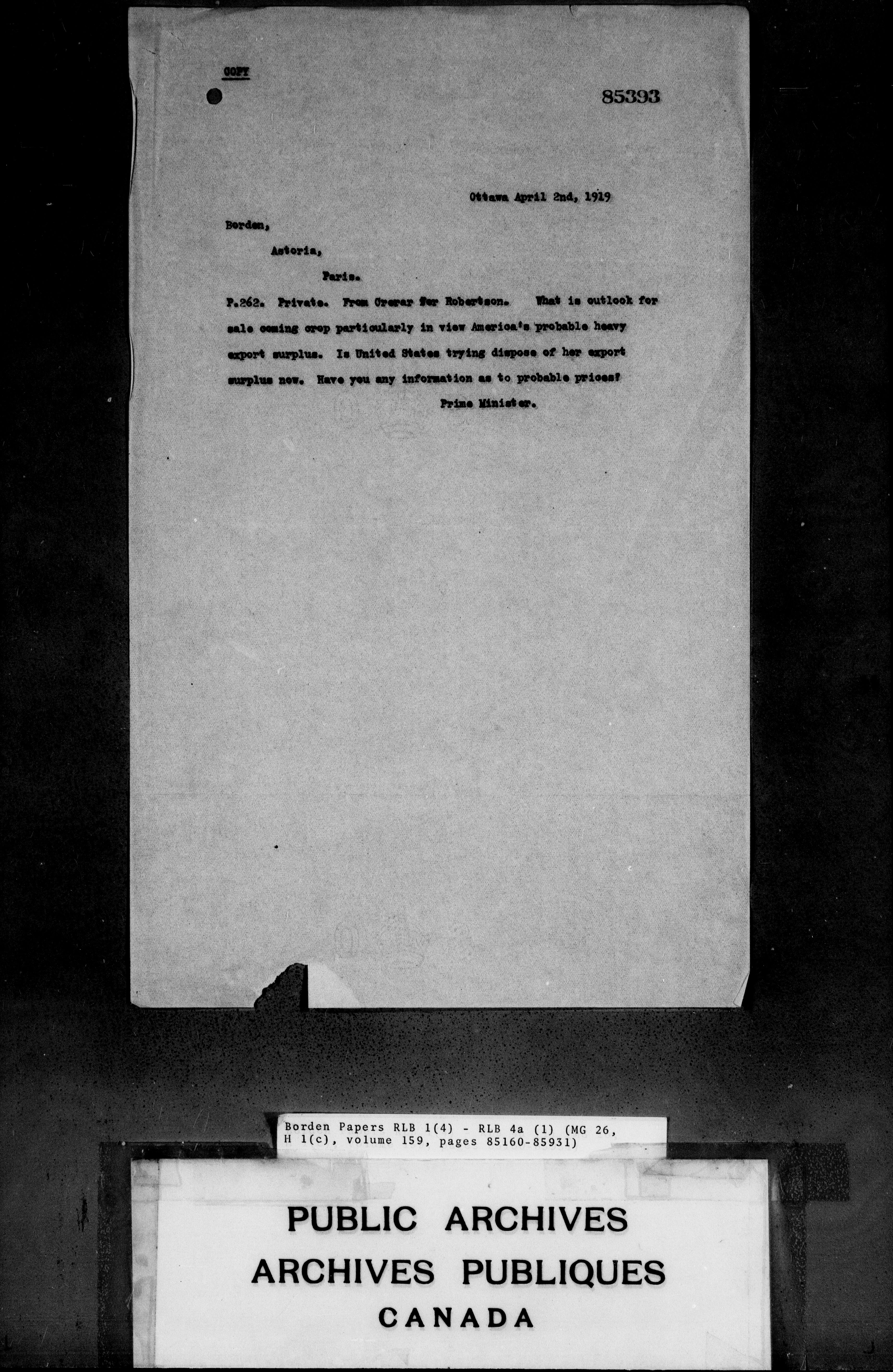 Sir Robert Borden fonds - 4368