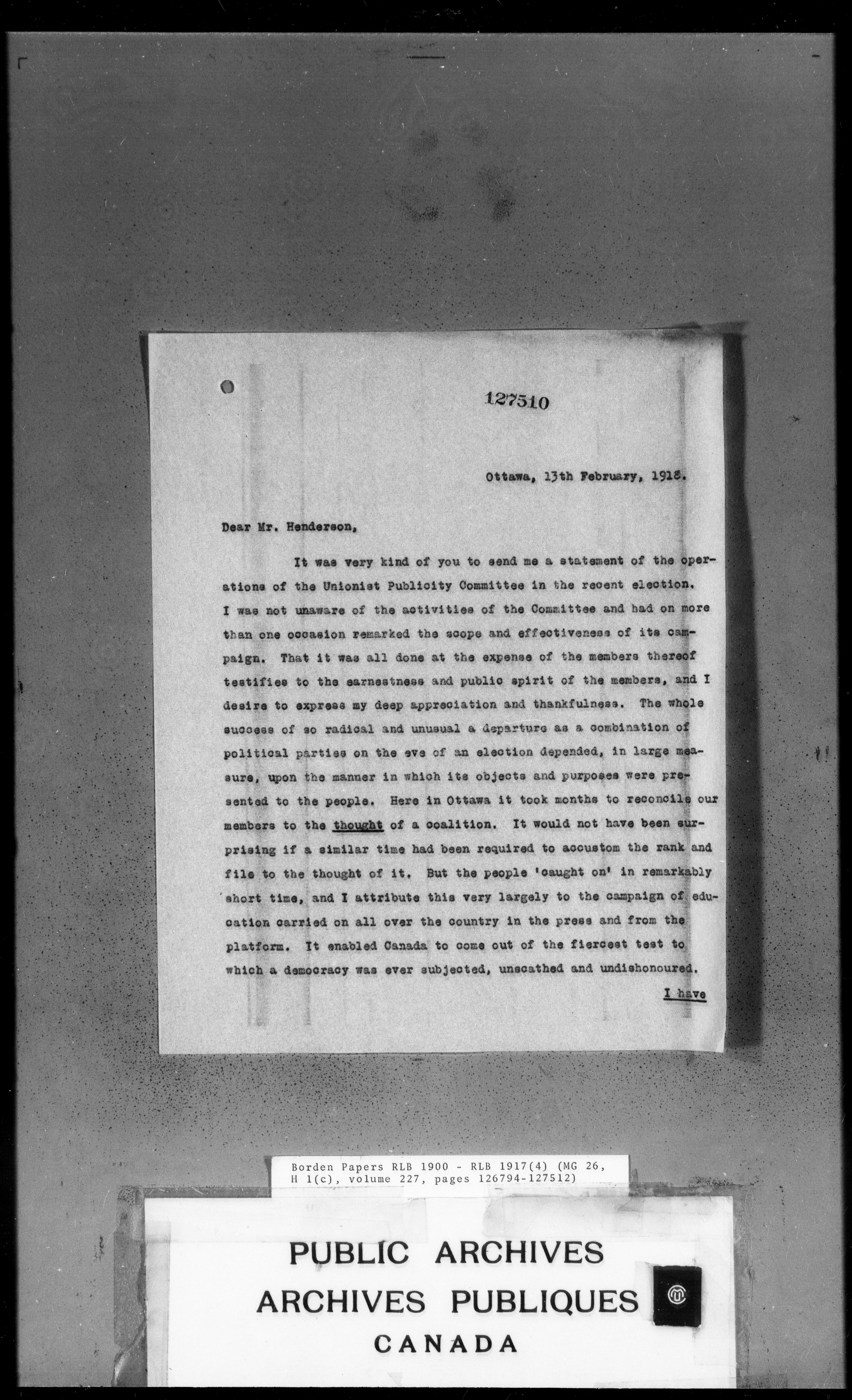 Sir Robert Borden fonds - 4407