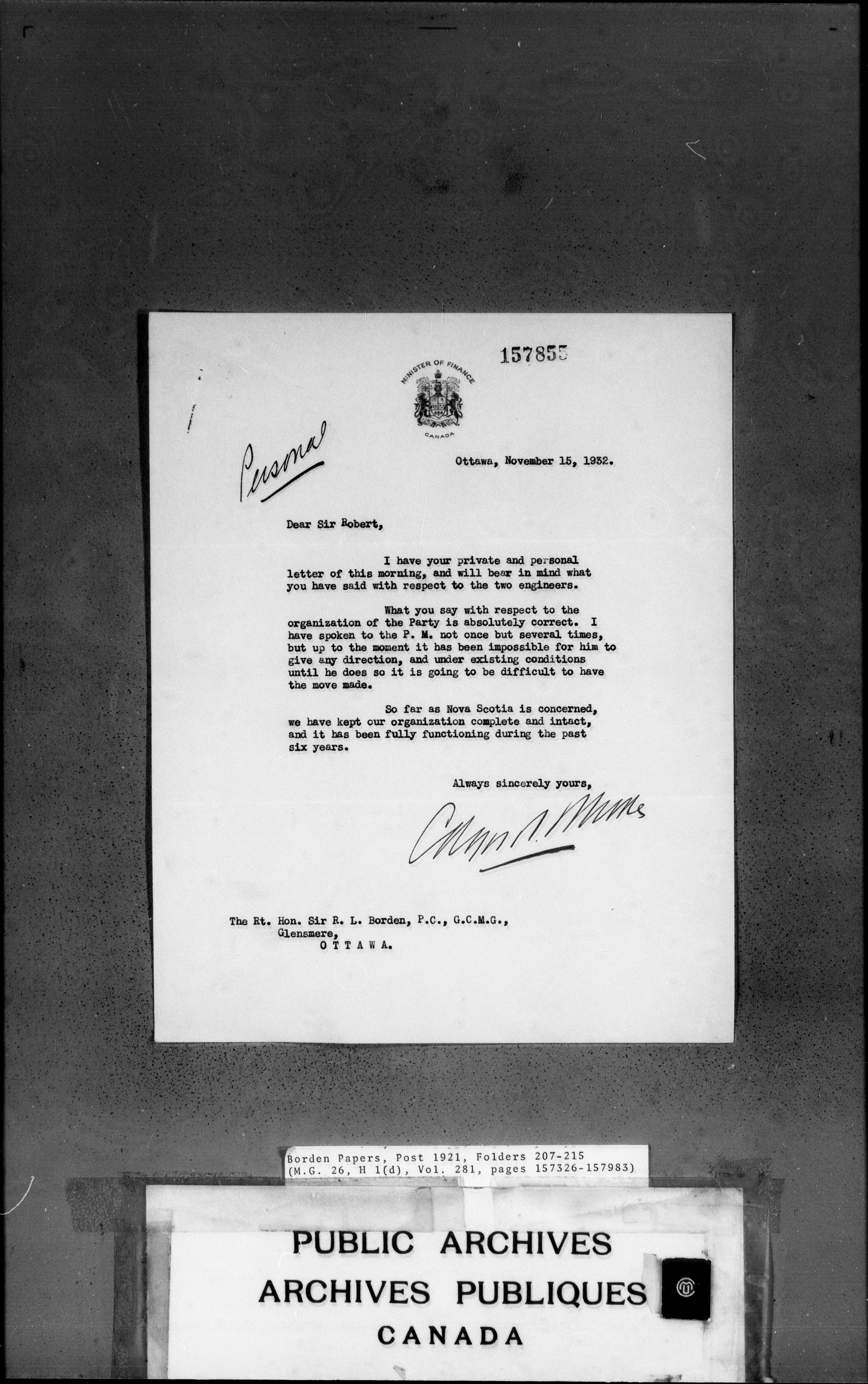 Sir Robert Borden fonds - 4437