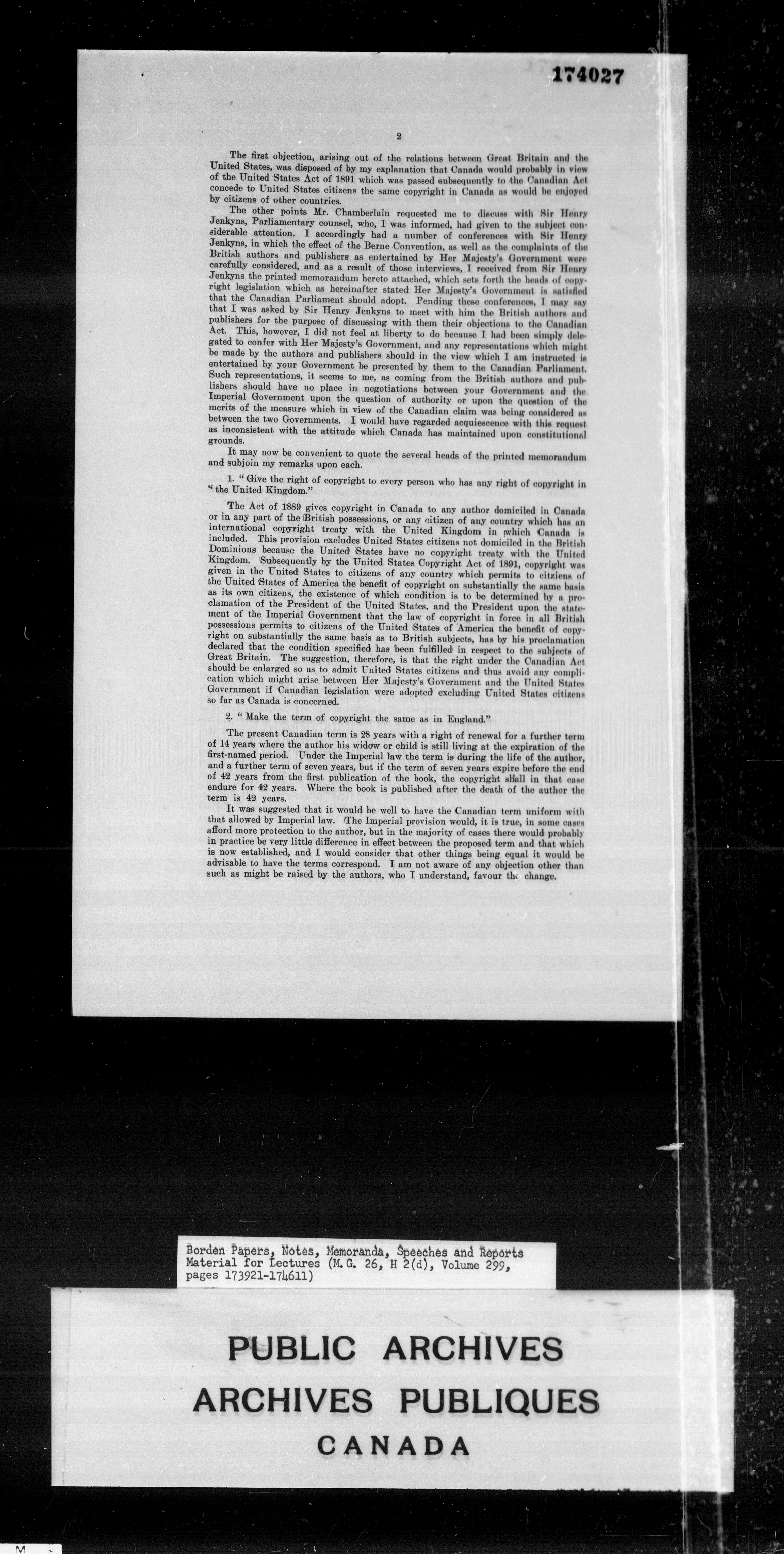 Sir Robert Borden : Correction Miscellaneous - 4449