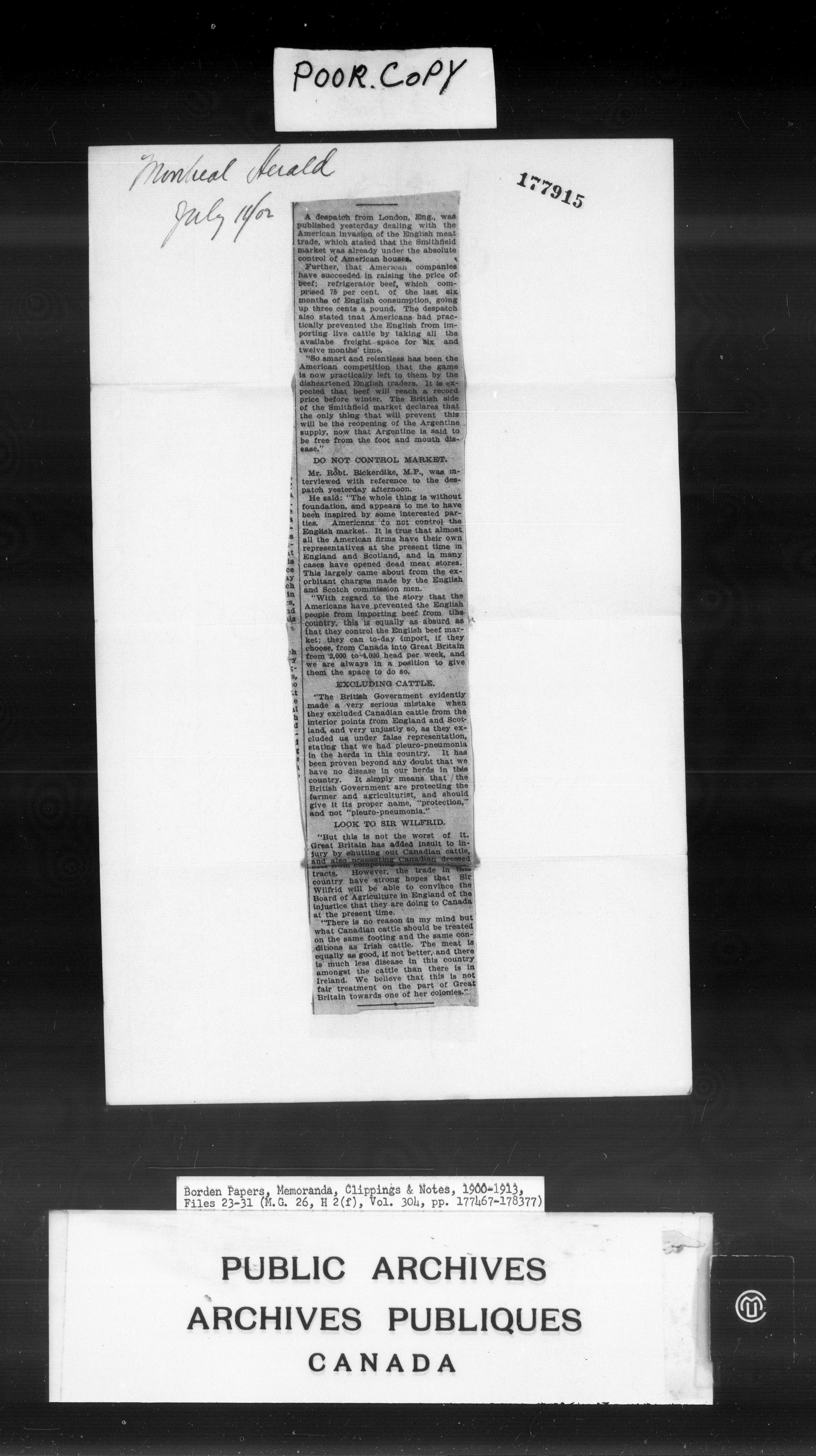 Sir Robert Borden : Memoranda, Clippings, Reports - 4452