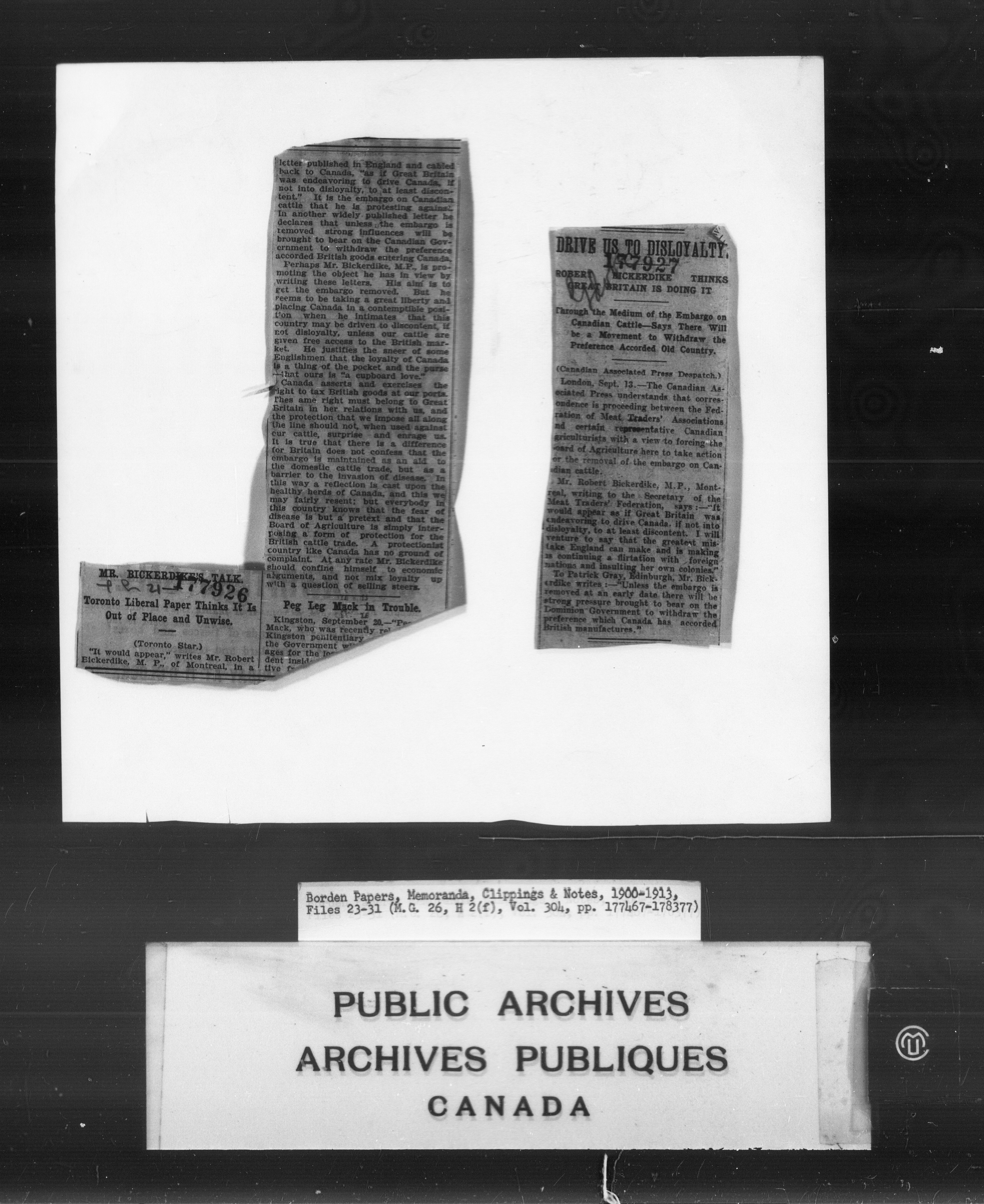 Sir Robert Borden : Memoranda, Clippings, Reports - 4452
