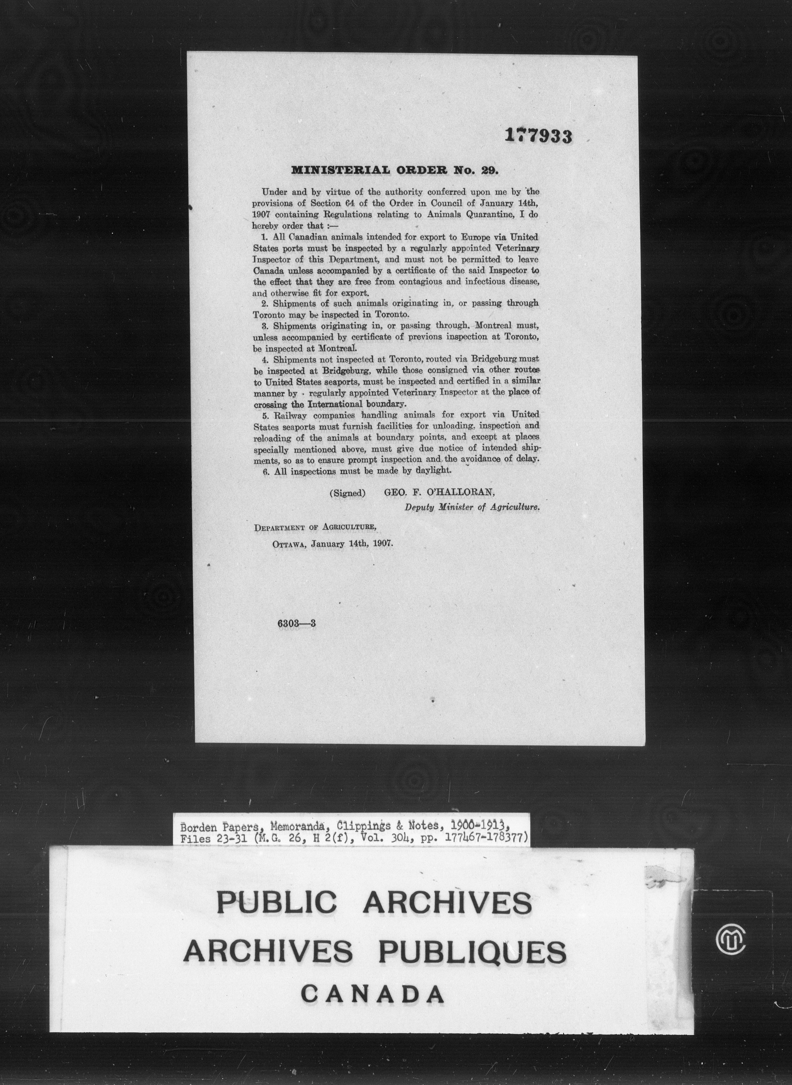Sir Robert Borden : Memoranda, Clippings, Reports - 4452