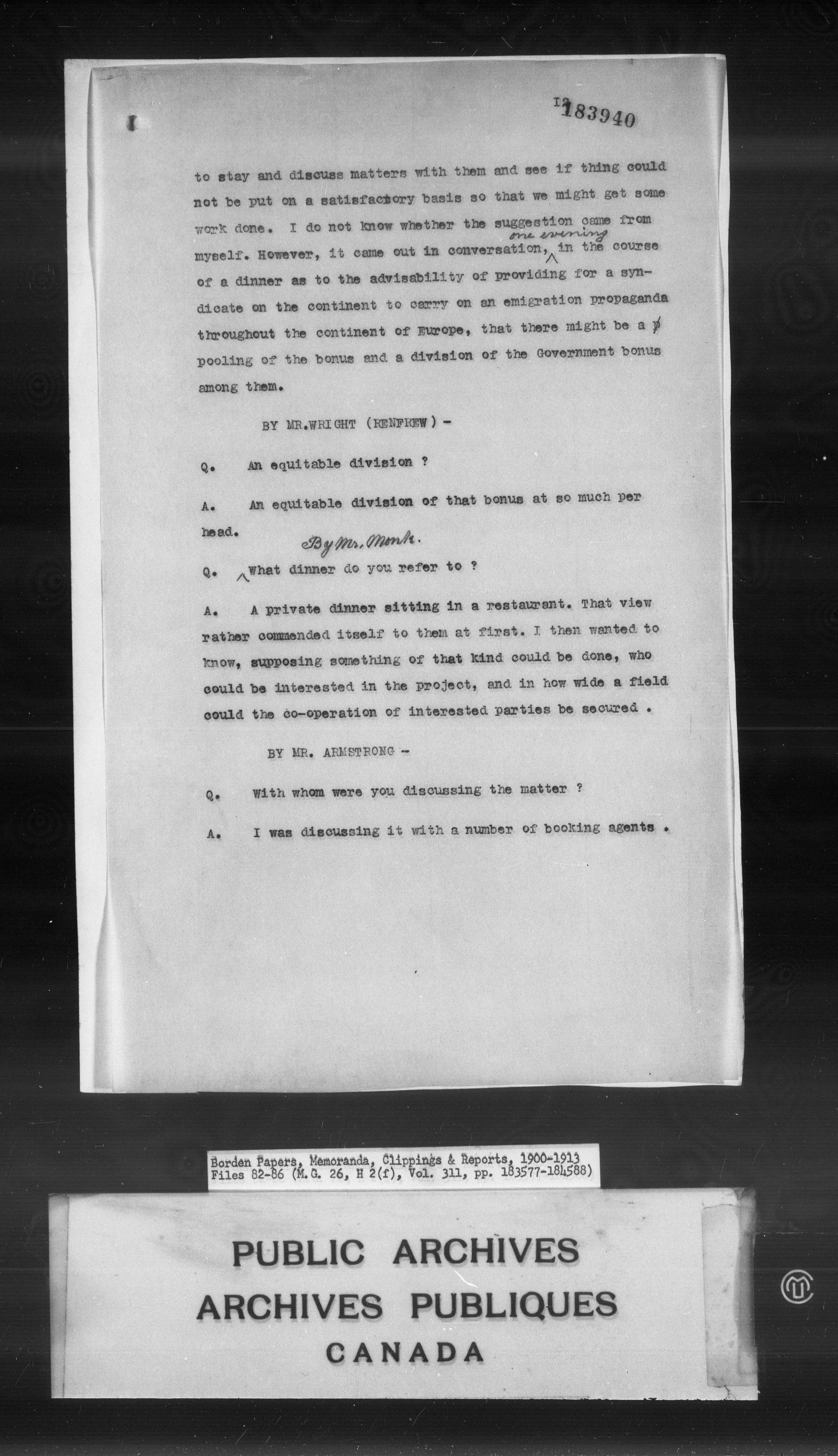 Sir Robert Borden : Memoranda, Clippings, Reports - 4457