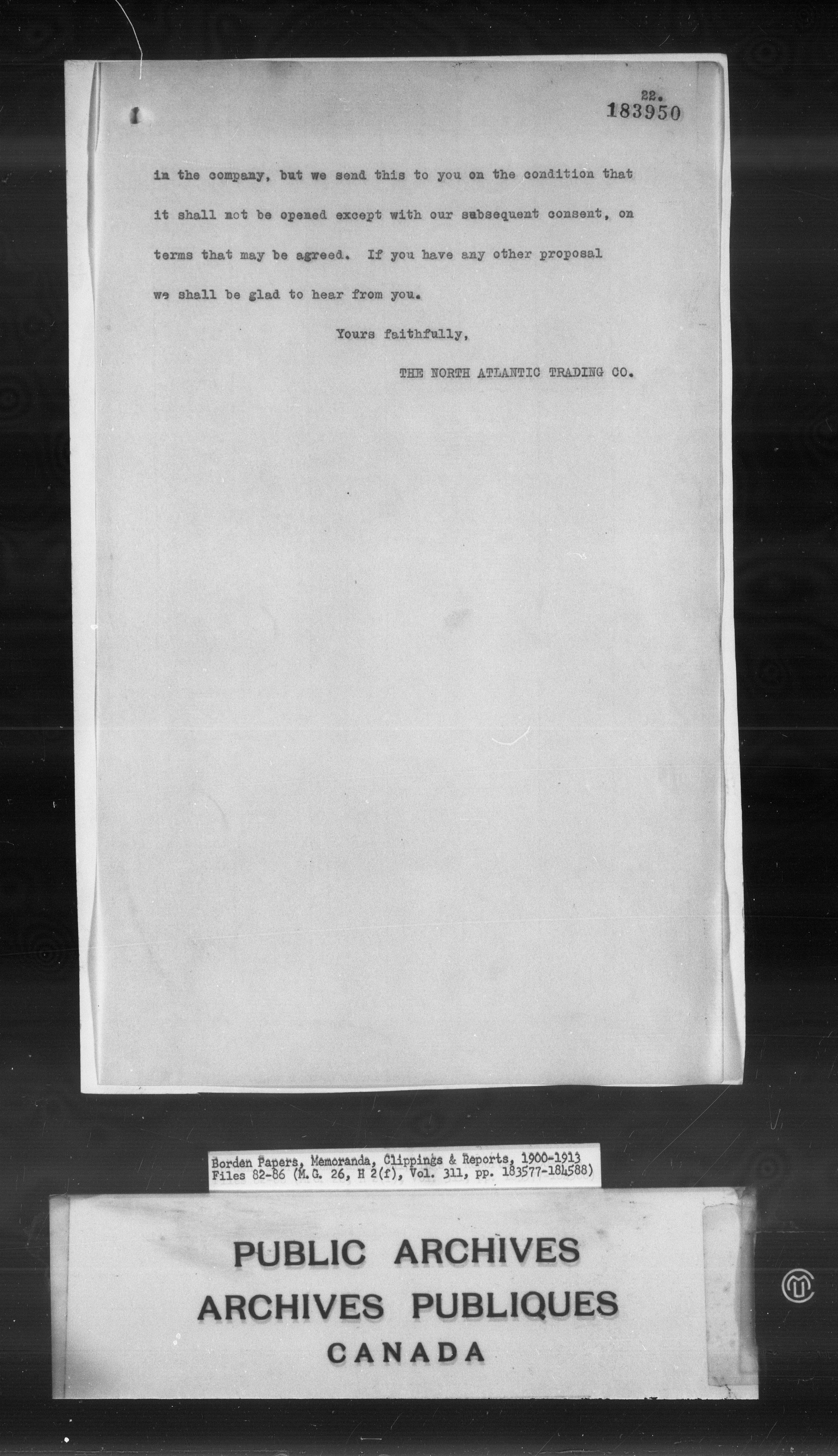 Sir Robert Borden : Memoranda, Clippings, Reports - 4457
