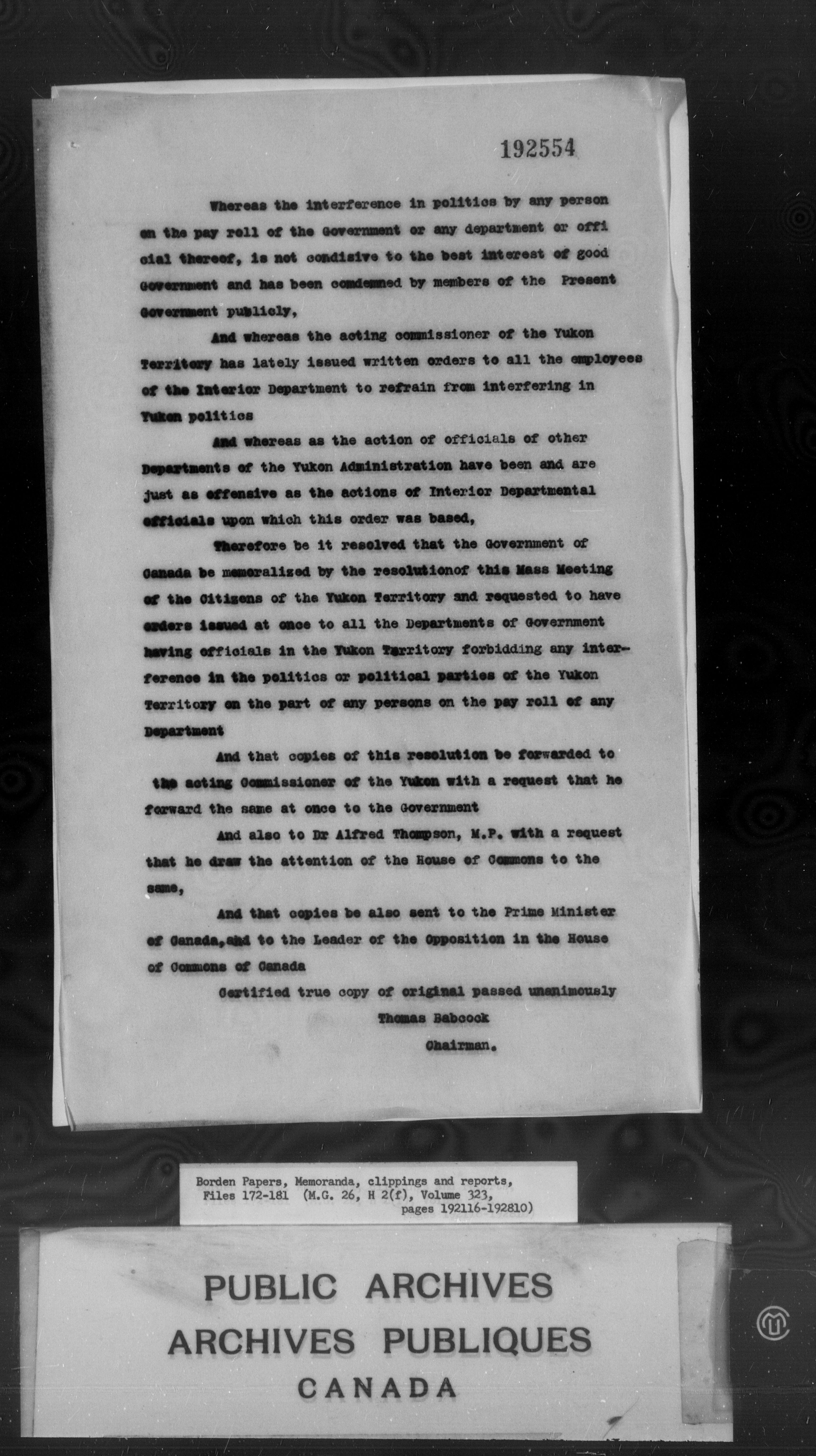 Sir Robert Borden : Memoranda, Clippings, Reports - 4463