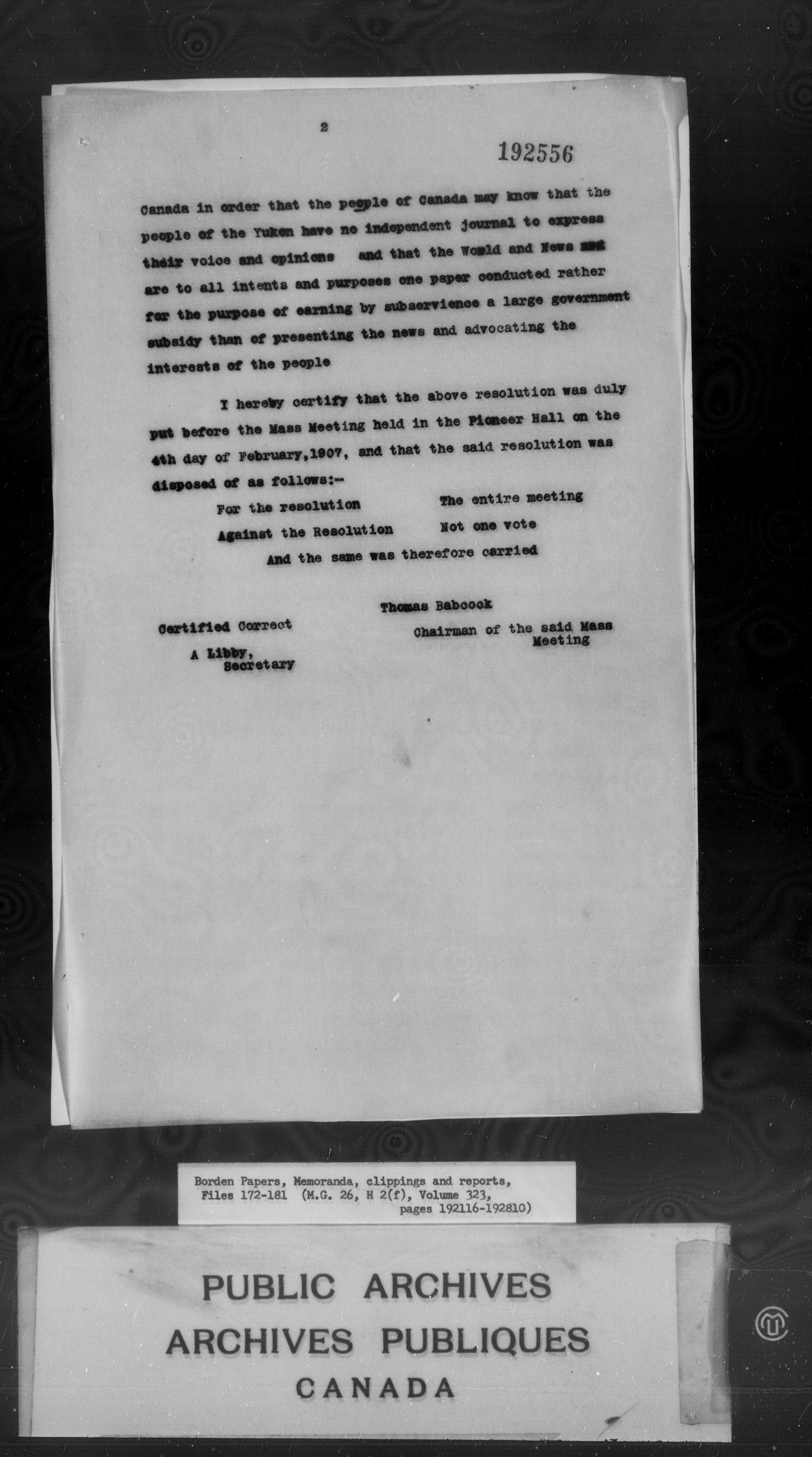 Sir Robert Borden : Memoranda, Clippings, Reports - 4463