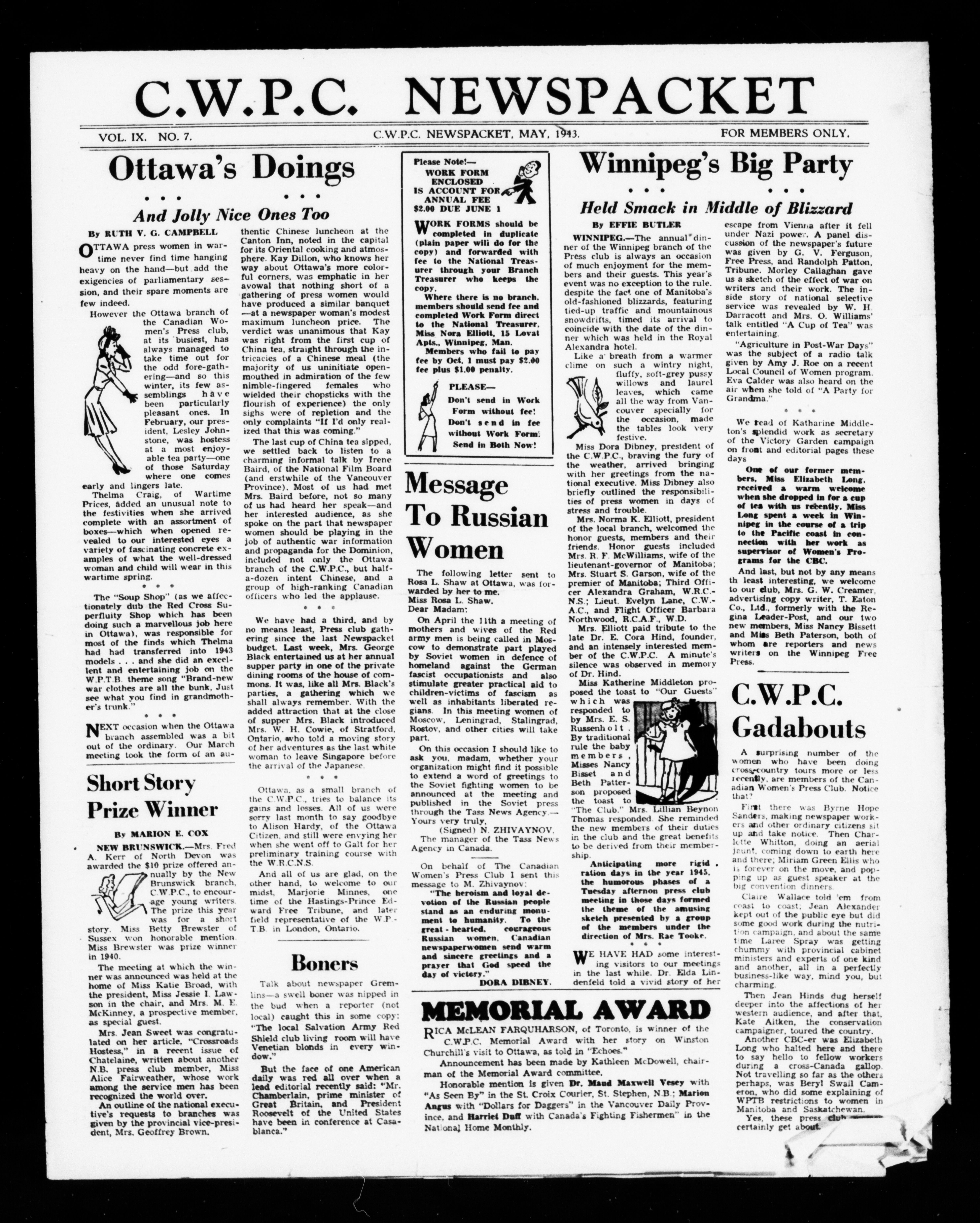 Canadian Women's Press Club : Clippings, scrapbooks and other printed matter - 4474