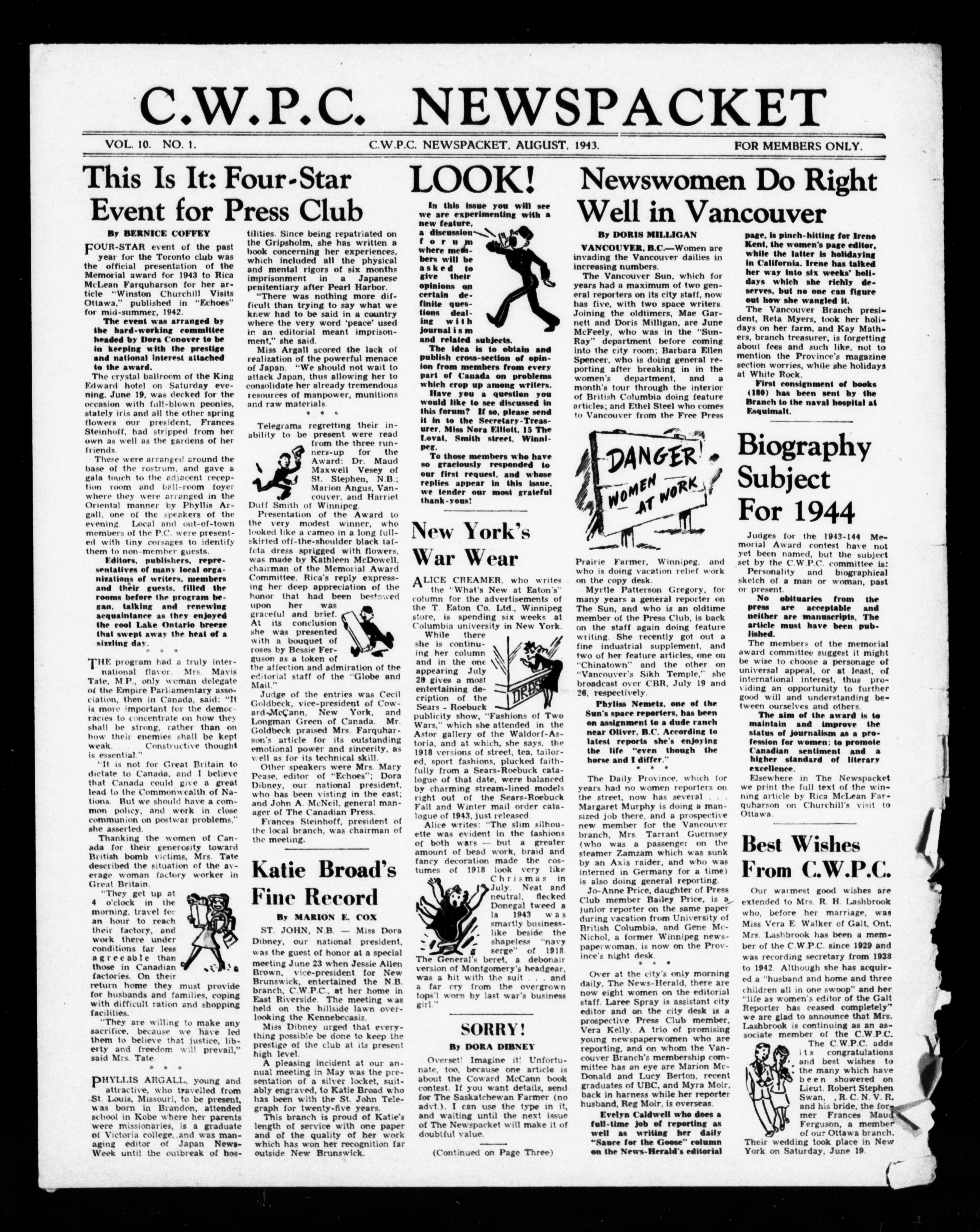 Canadian Women's Press Club : Clippings, scrapbooks and other printed matter - 4474