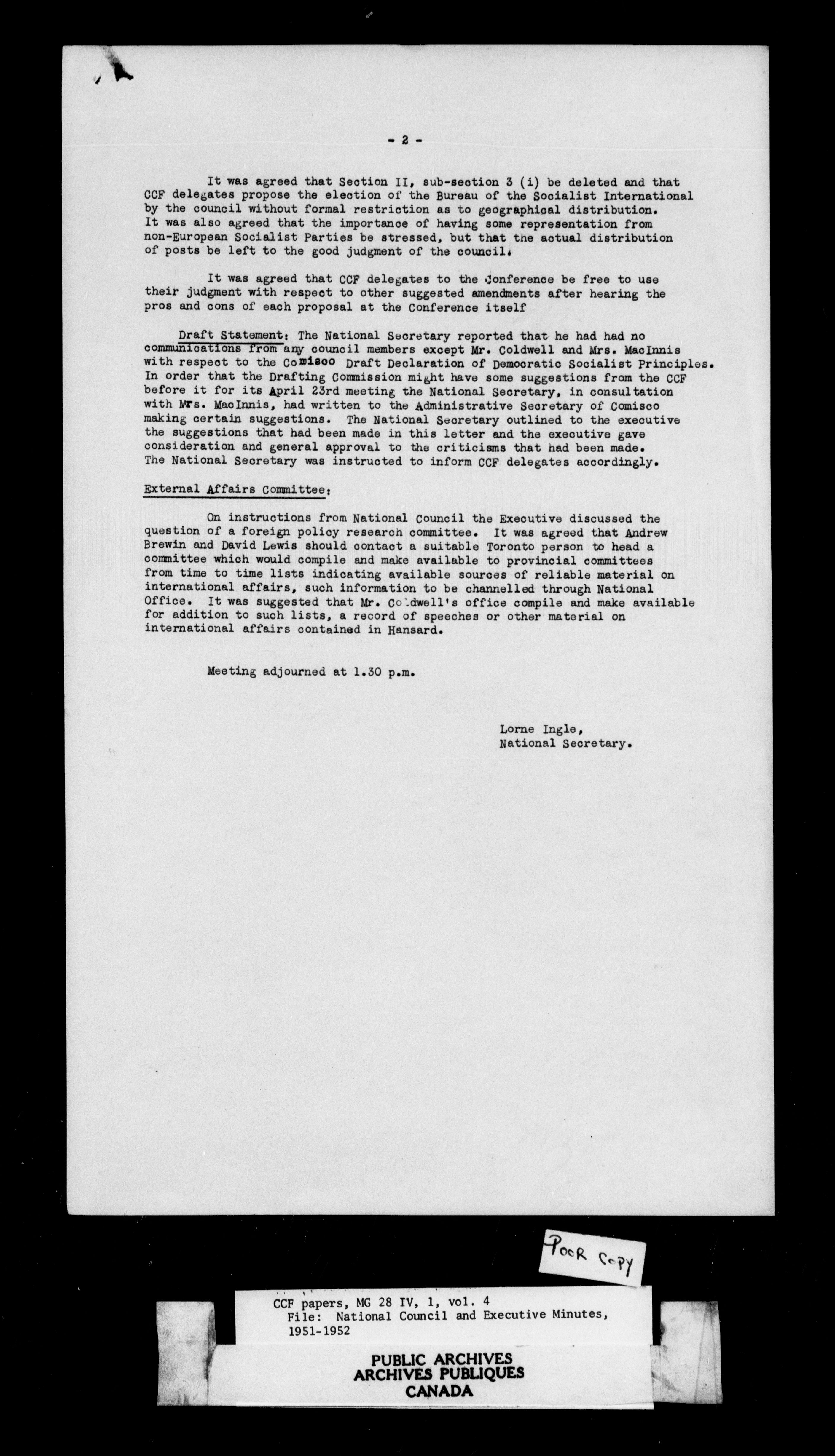 The Co-operative Commonwealth Federation : National Council and National Executive, 1932-1960 - 4476