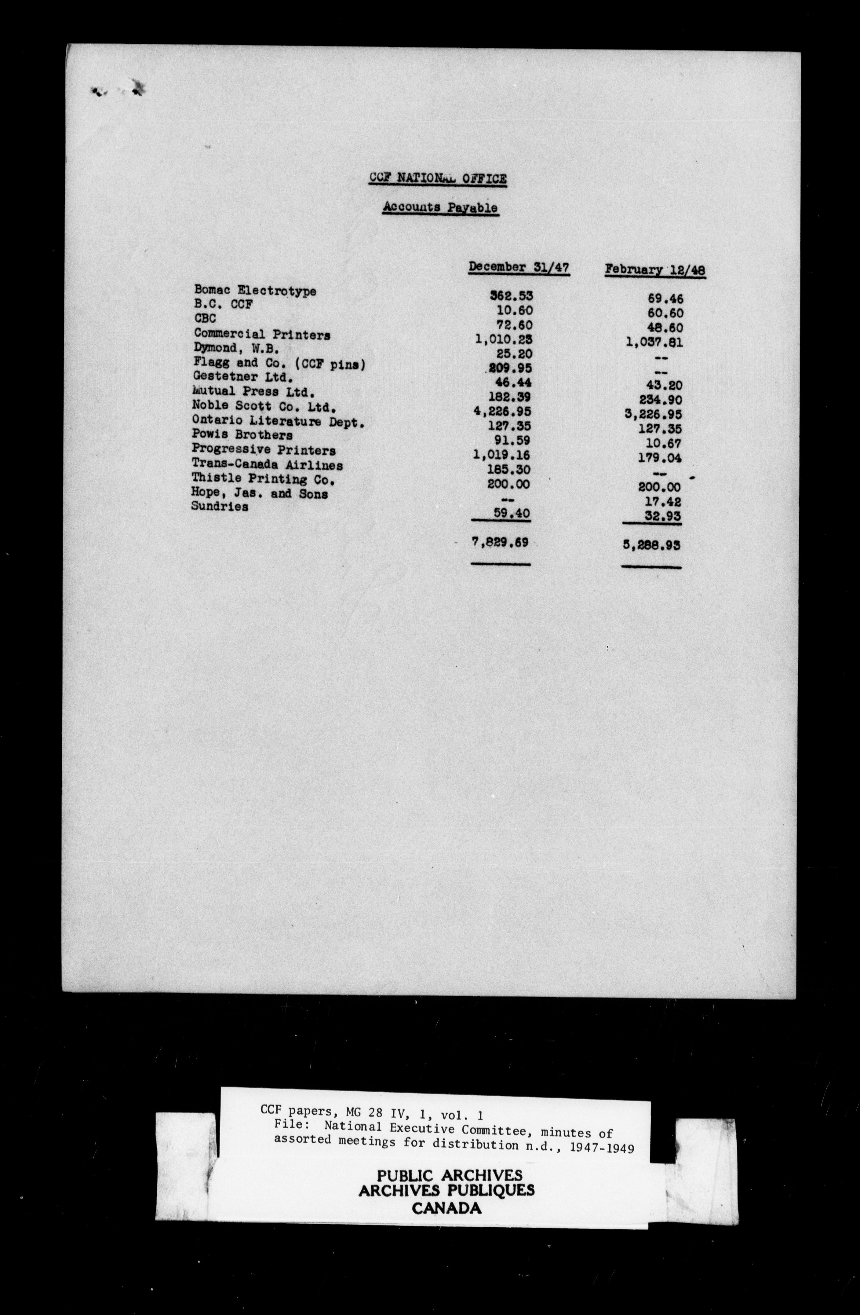 The Co-operative Commonwealth Federation : National Council and National Executive, 1932-1960 - 4476