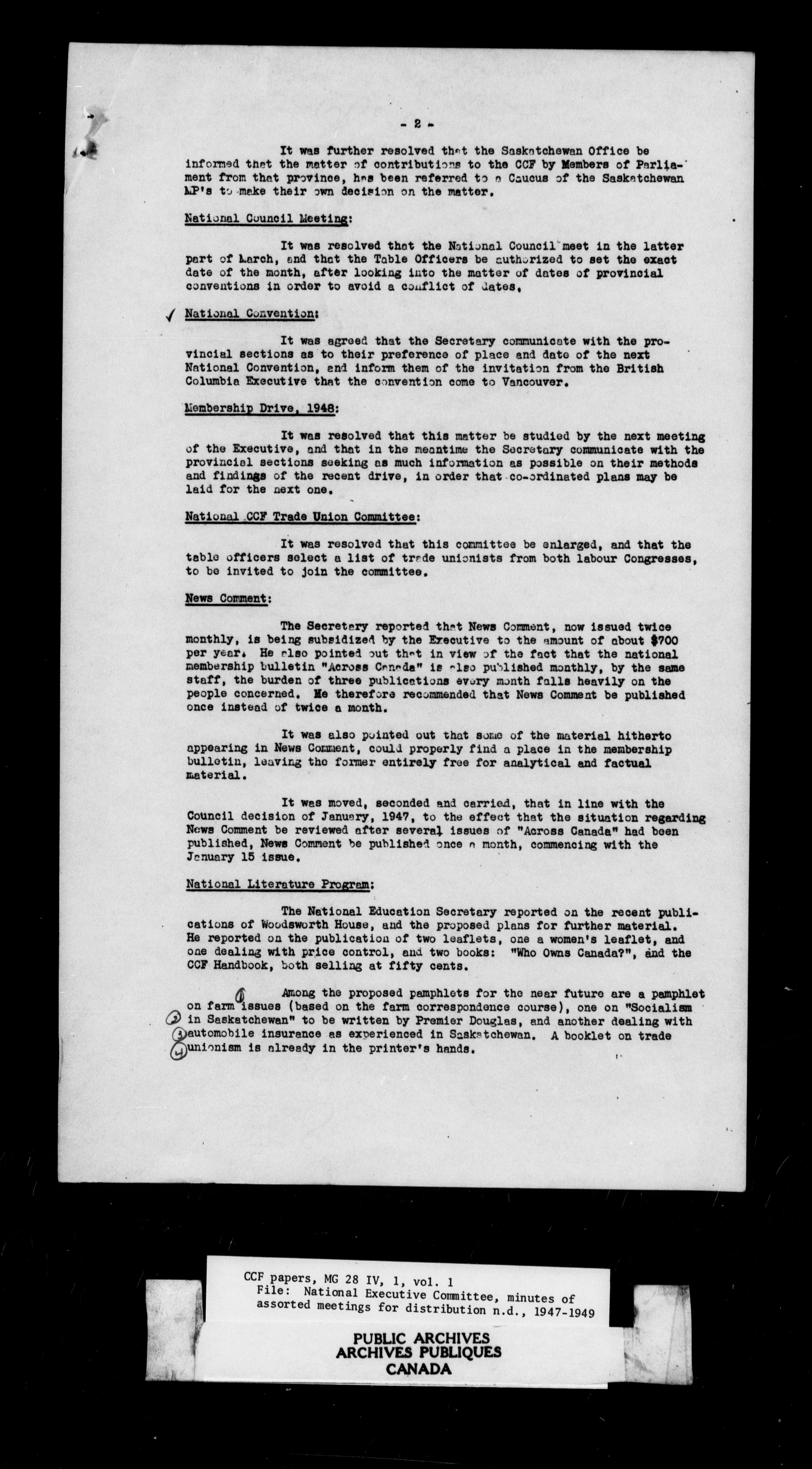The Co-operative Commonwealth Federation : National Council and National Executive, 1932-1960 - 4476
