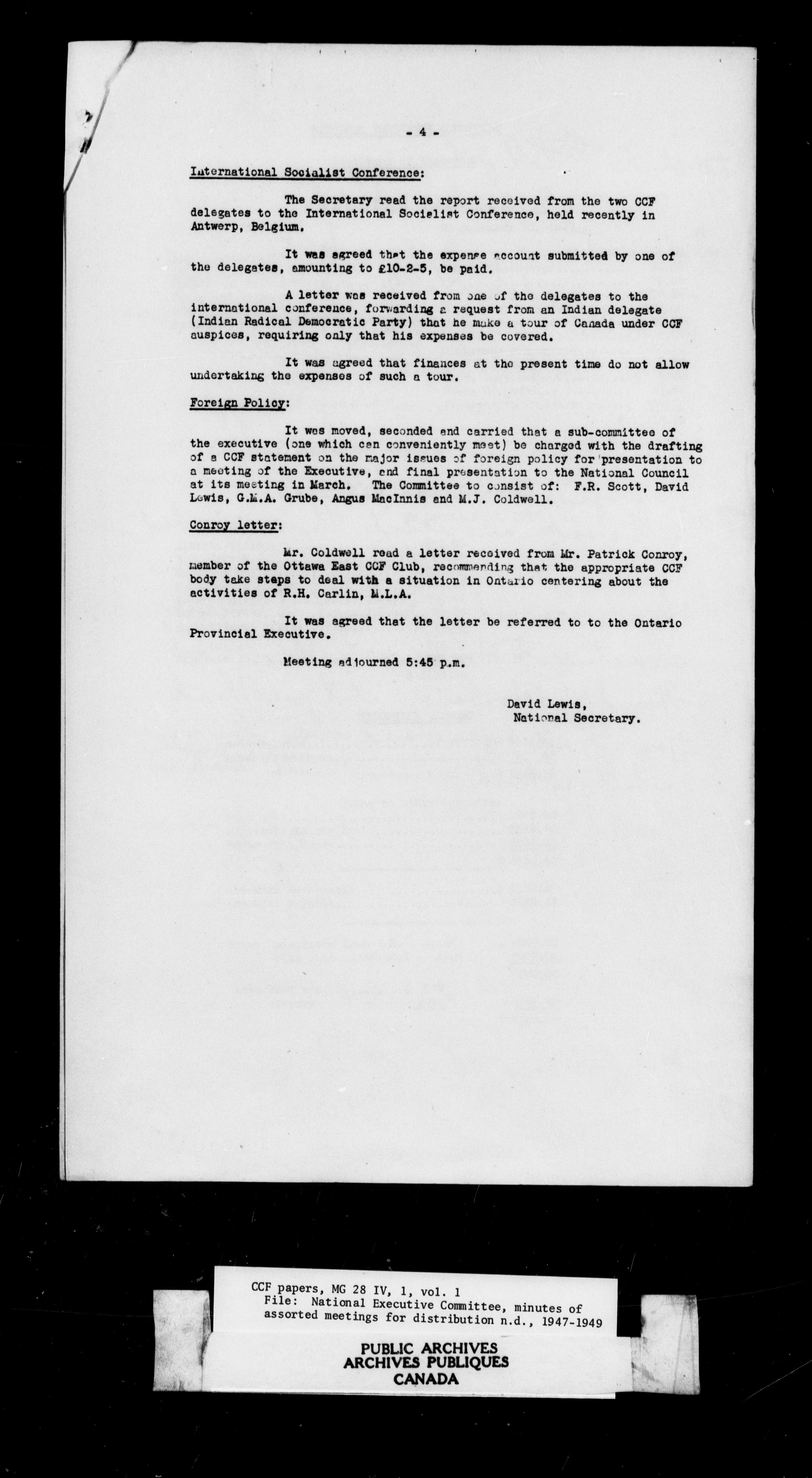 The Co-operative Commonwealth Federation : National Council and National Executive, 1932-1960 - 4476