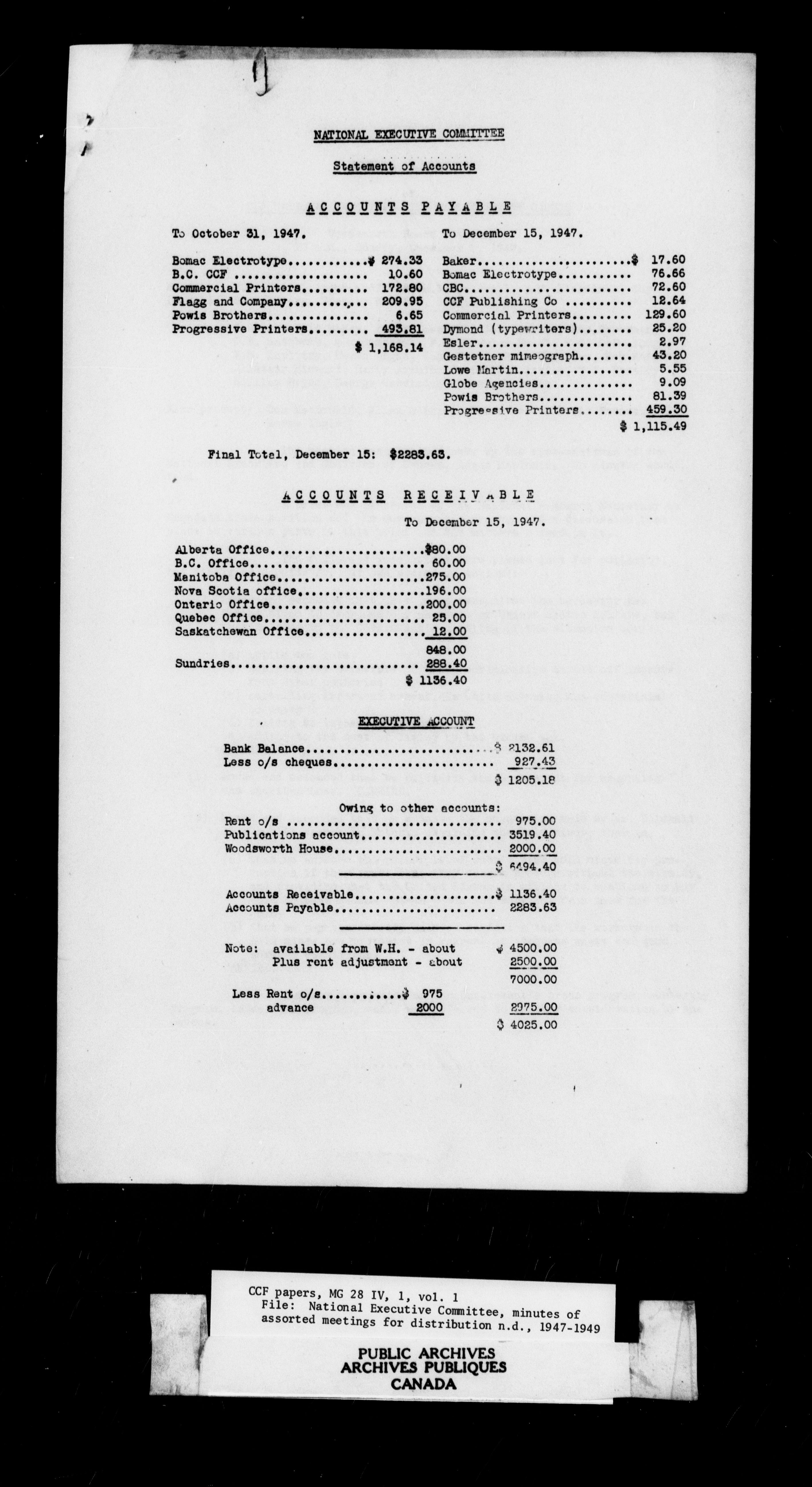 The Co-operative Commonwealth Federation : National Council and National Executive, 1932-1960 - 4476