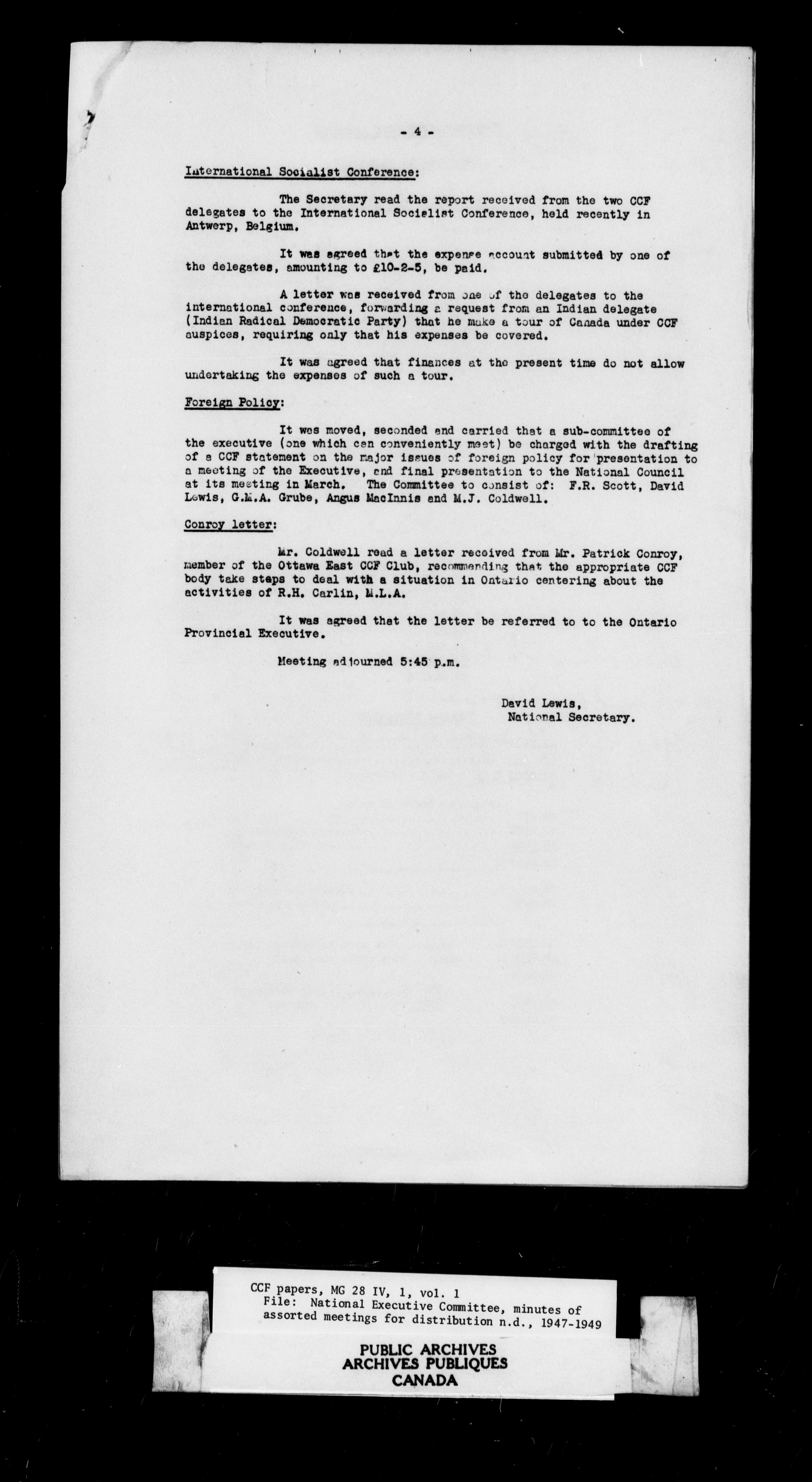 The Co-operative Commonwealth Federation : National Council and National Executive, 1932-1960 - 4476