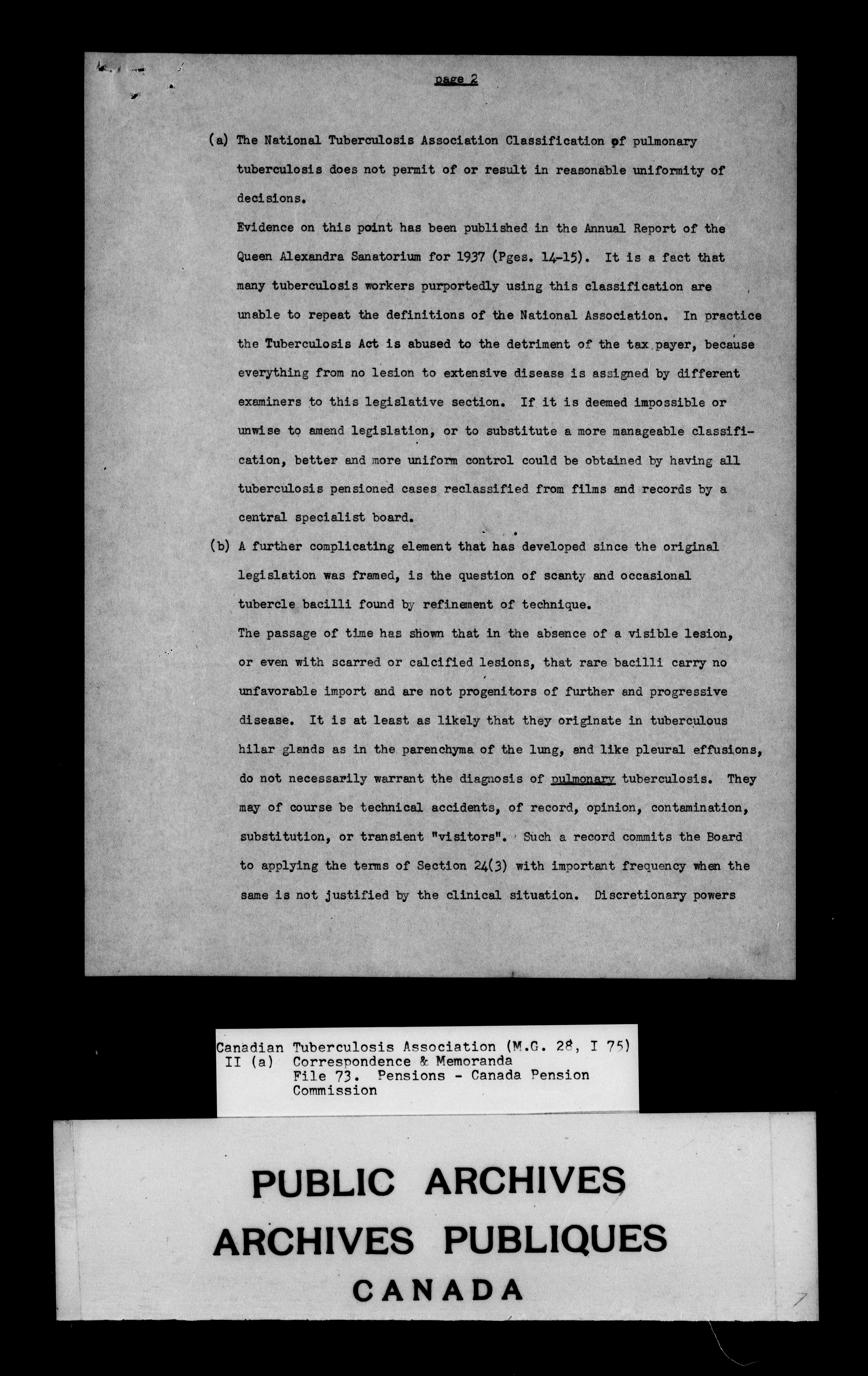 Canadian Tuberculosis Association : Papers - 4486