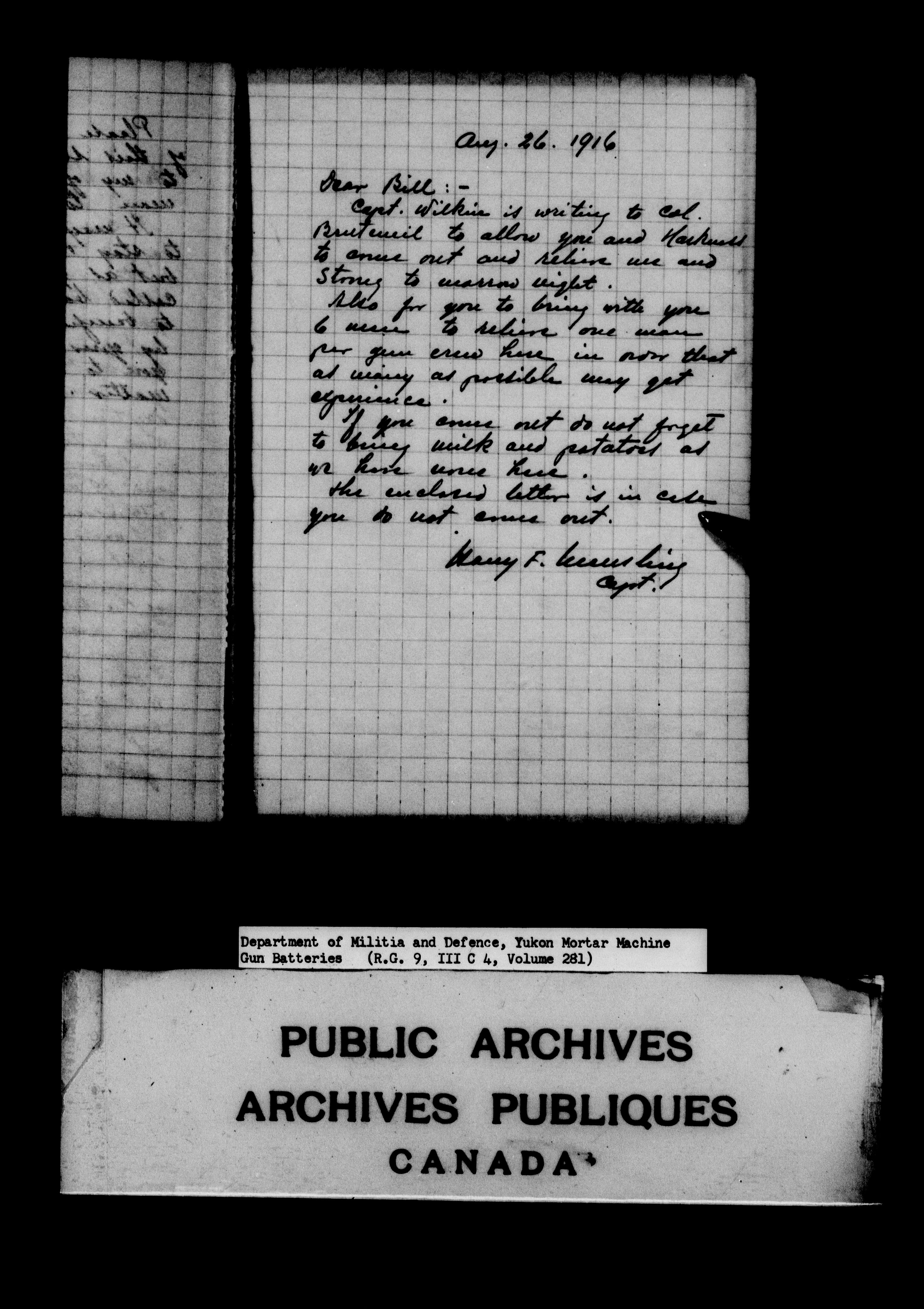 Department of Militia and Defence : Yukon Mortar Machine Gun Batteries - 4496
