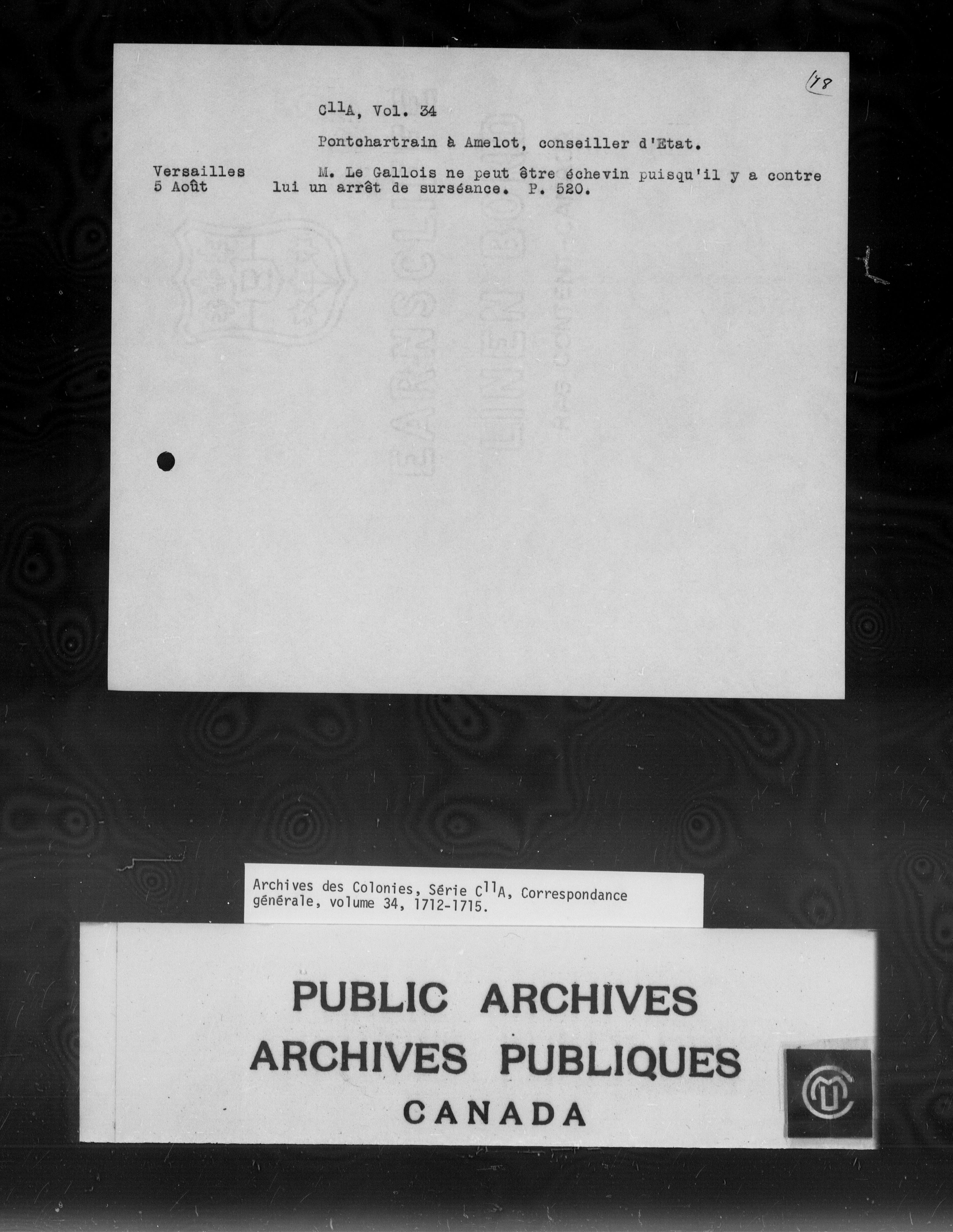 France fonds des Colonies : Série C11A. Correspondance générale; Canada - 4550