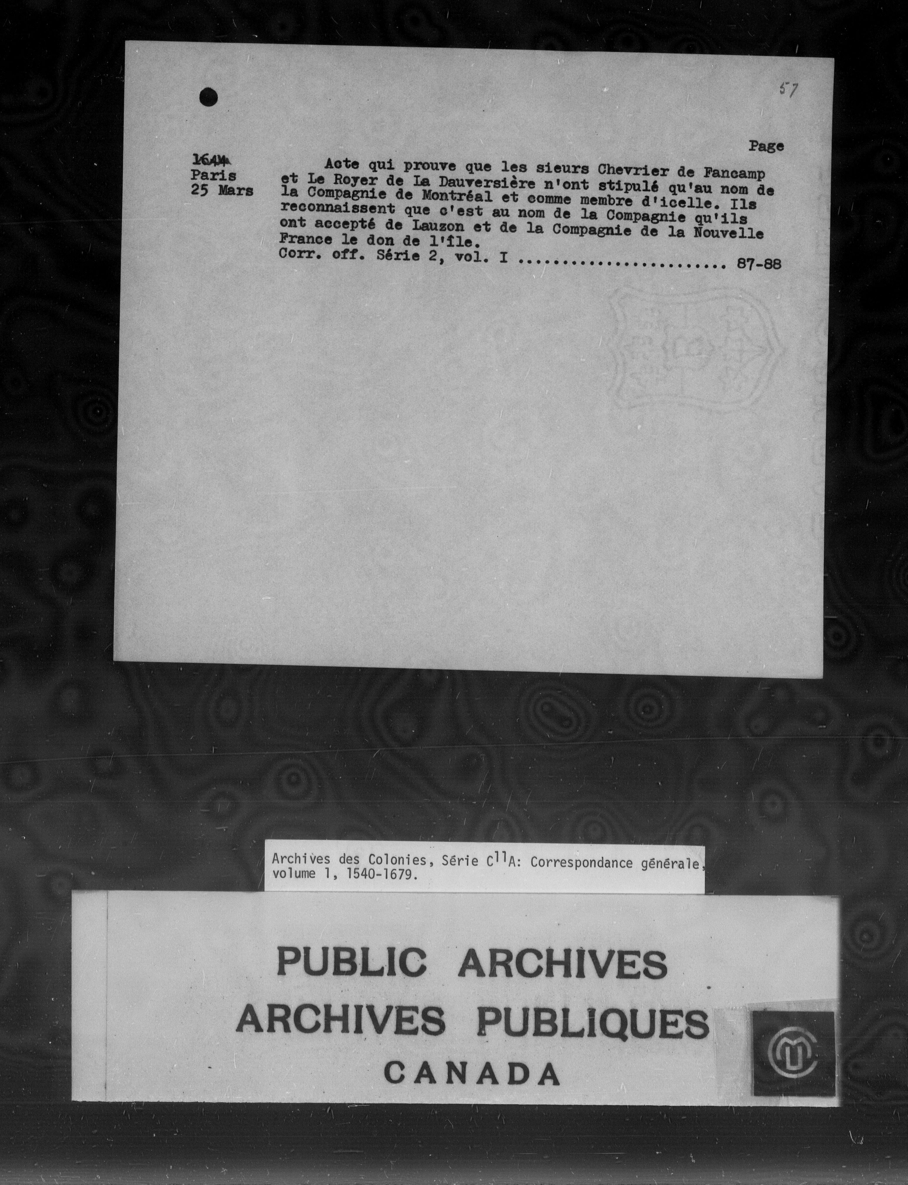 France fonds des Colonies : Série C11A. Correspondance générale; Canada - 4550