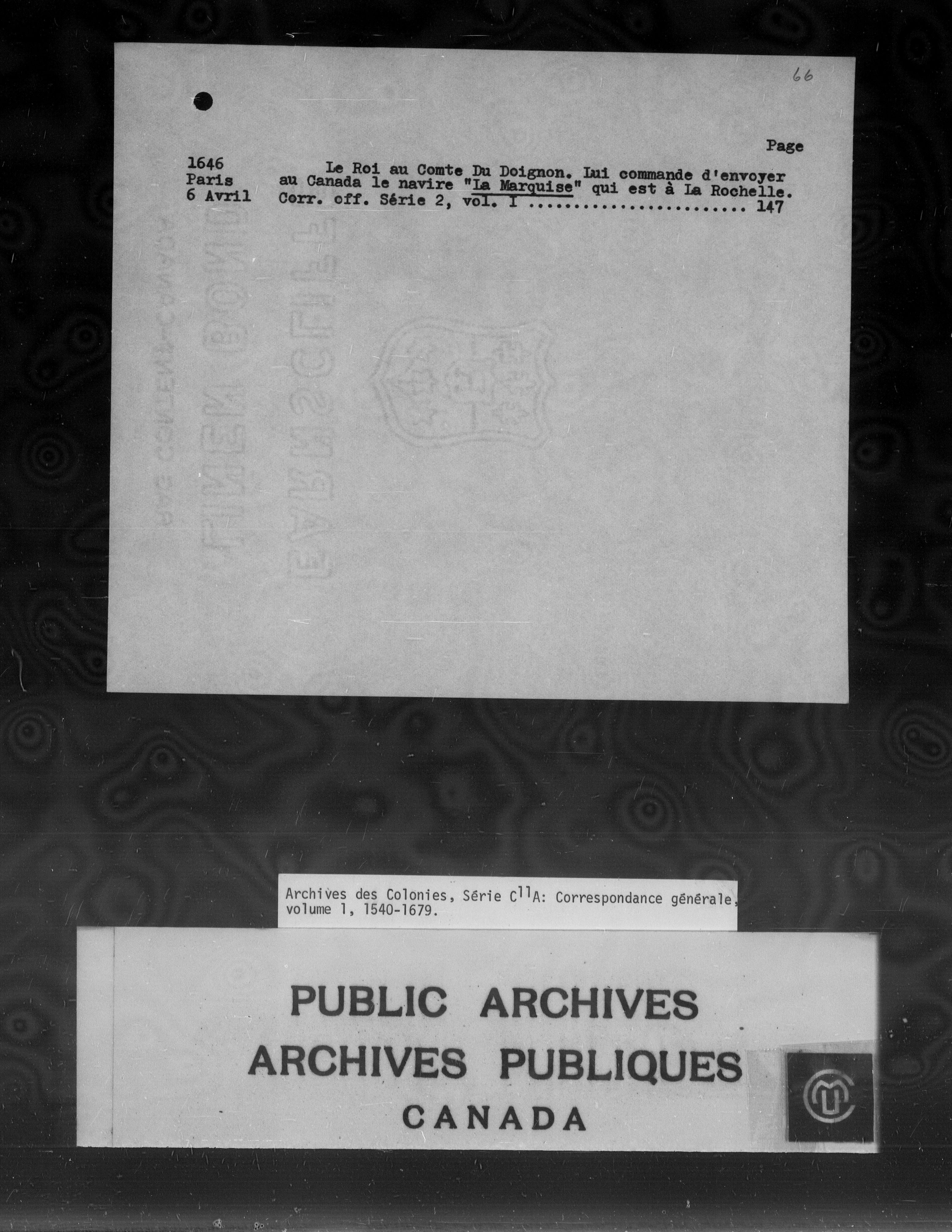 France fonds des Colonies : Série C11A. Correspondance générale; Canada - 4550