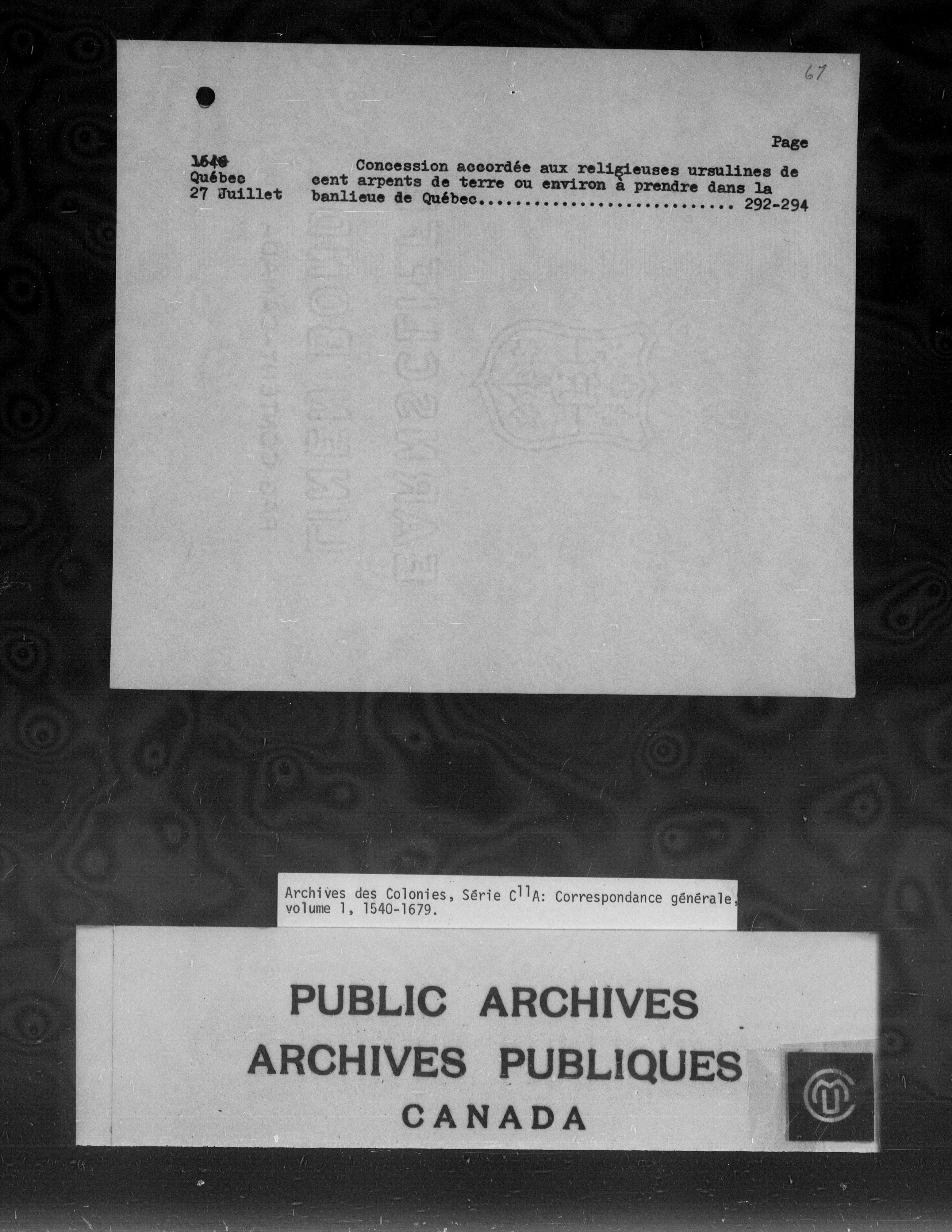France fonds des Colonies : Série C11A. Correspondance générale; Canada - 4550