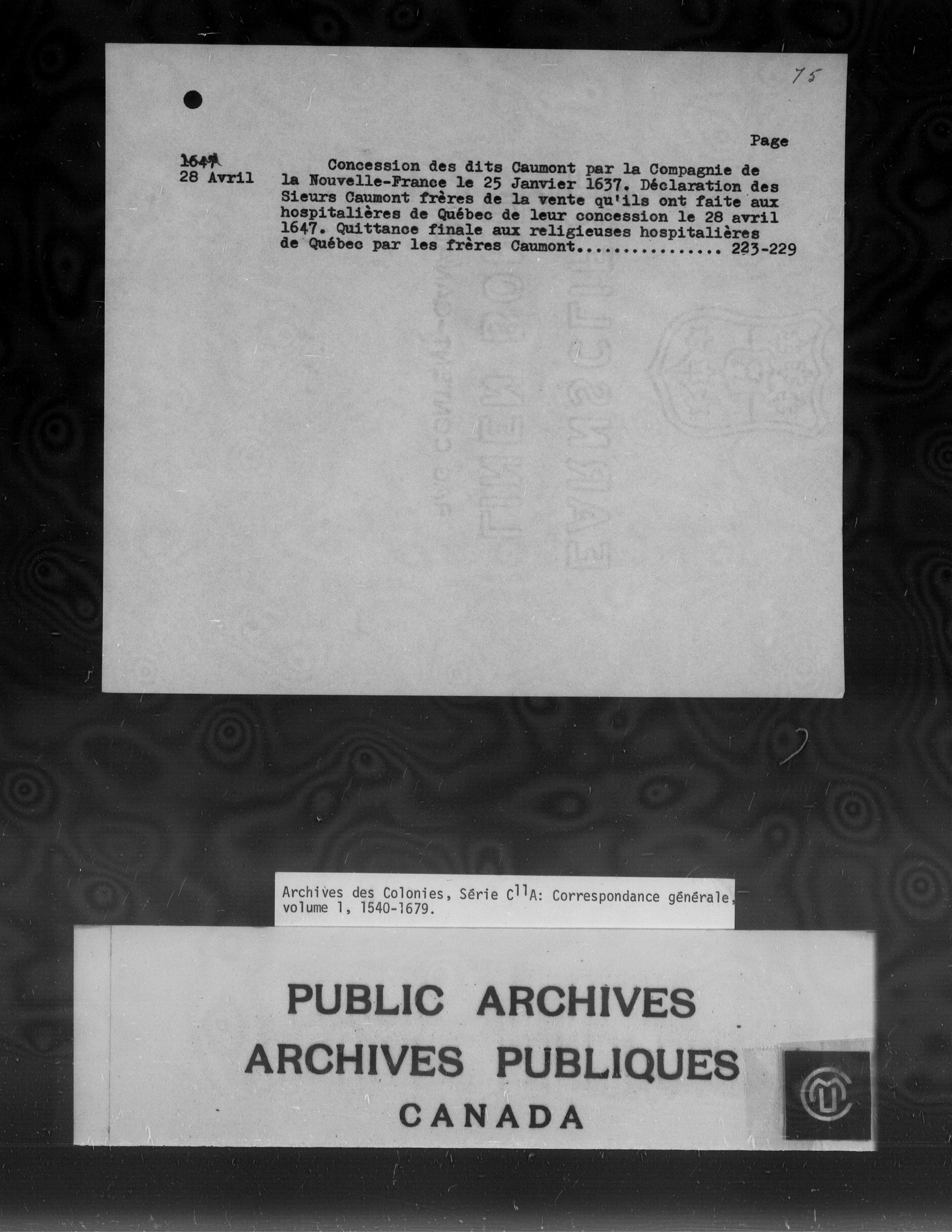 France fonds des Colonies : Série C11A. Correspondance générale; Canada - 4550